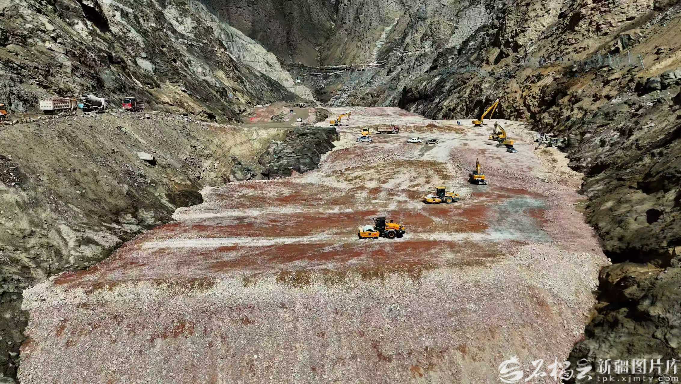 近日,玉龙喀什水利枢纽大坝填筑施工现场。杜成摄