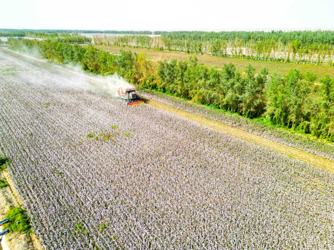 新疆阿瓦提县种植的144.98万亩棉花陆续进入采收期,棉农抢抓晴好天气采收,确保朵絮归仓。