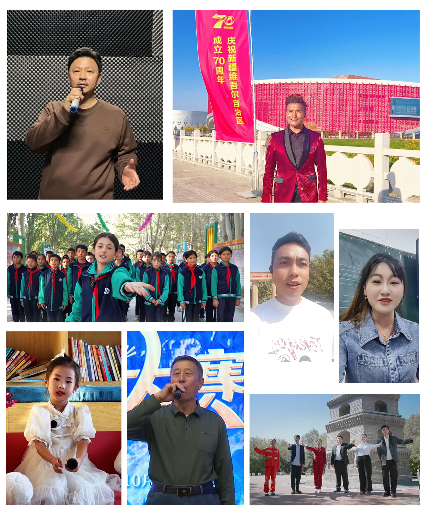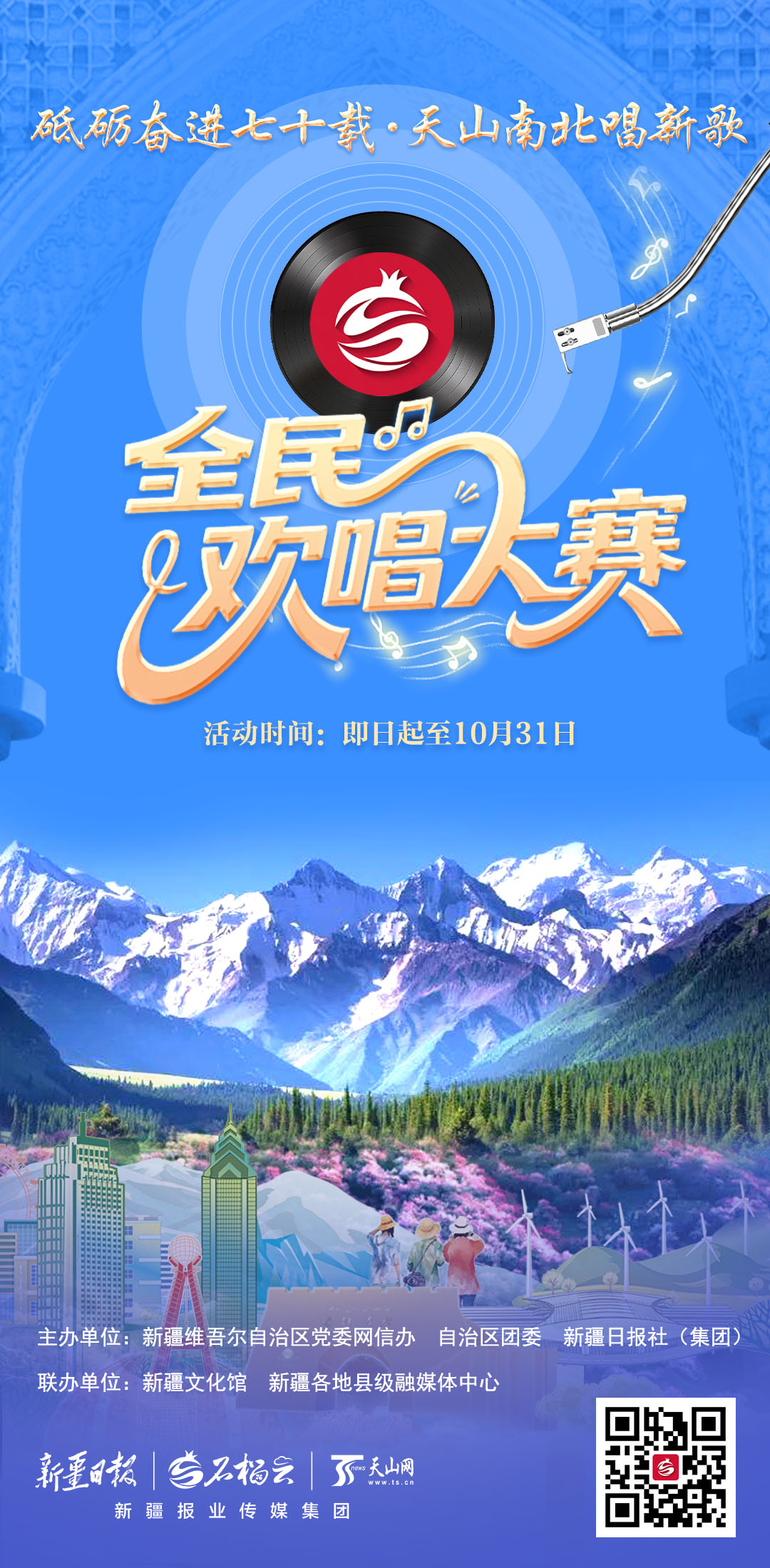 @新疆歌友们集合啦!由自治区党委网信办、自治区团委、新疆日报社(集团)主办,新疆文化馆、新疆各地县级融媒体中心联办的“砥砺奋进七十载·天山南北唱新歌”全民欢唱大赛,自9月19日启动以来,已累计收到参赛作品近百部。参与者来自乌鲁木齐市、昌吉市、克拉玛依市、阿克苏市、喀什市、阿勒泰市、墨玉县等地,既有专业的歌手,也有业余爱好者;既有老师与学生,也有老人和孩童,大家都因对音乐的热爱而汇聚于此。那清亮的童声、昂扬的青年之声、沧桑的老者之音,交织融合,共同凝成对这片热土最深情的告白。