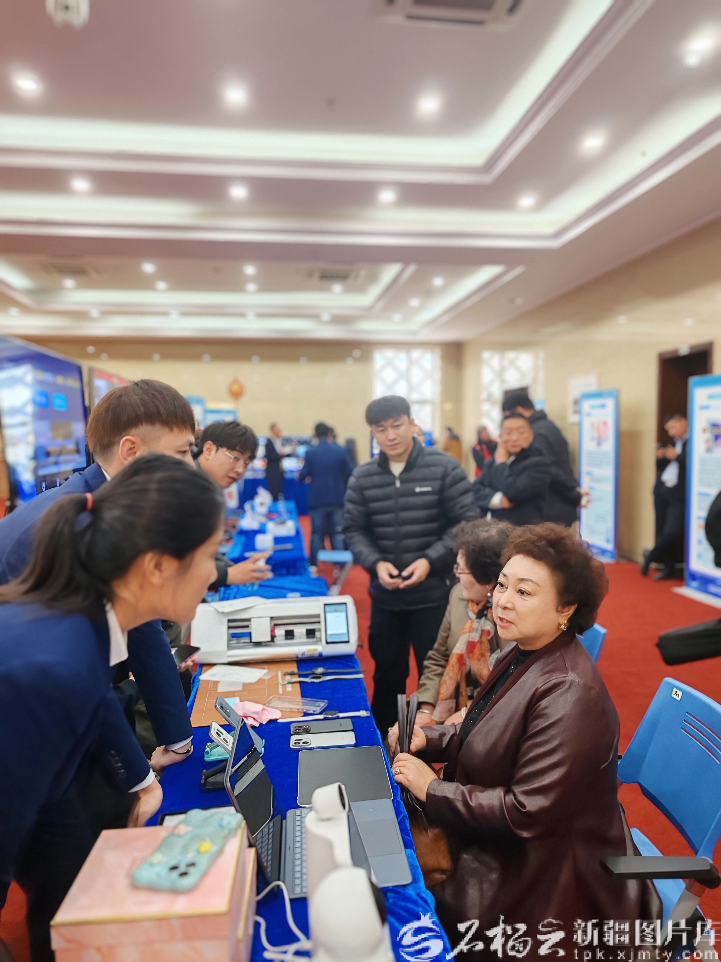 10月14日,在活动现场设置的“敬老助老服务展区”,工作人员正在认真向老年人介绍适老化改造的相关电子产品。石榴云/新疆日报记者 魏红萍摄