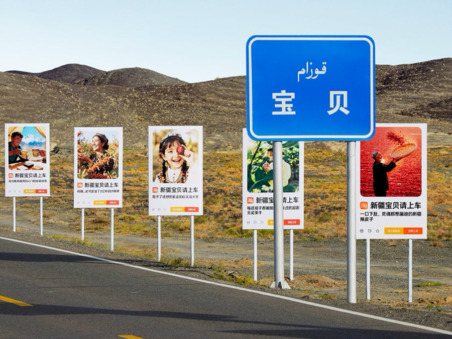 每隔十米,就有一件精选的“商品框”静候于此。向那些忍不住逗留打卡“宝贝路牌”的游客们,推荐了一个又一个的新疆宝贝。