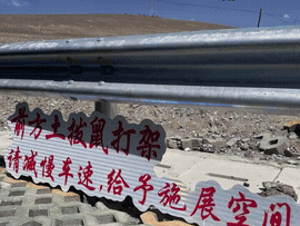 在新疆帕米尔高原的盘龙古道附近,一块警示牌让过往旅客忍俊不禁——“前方土拨鼠打架,请减慢车速,给予施展空间”。