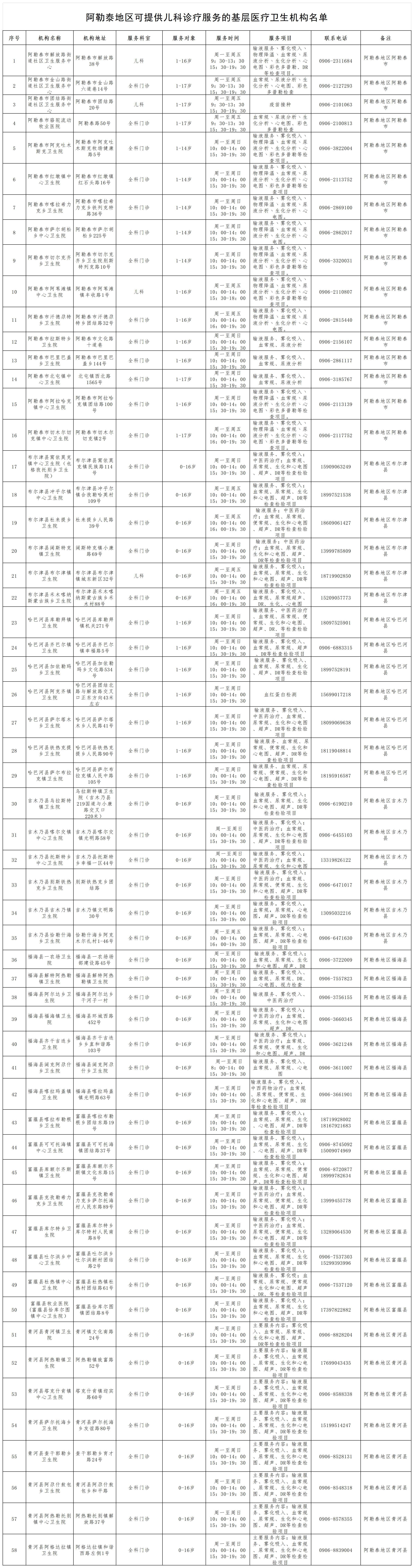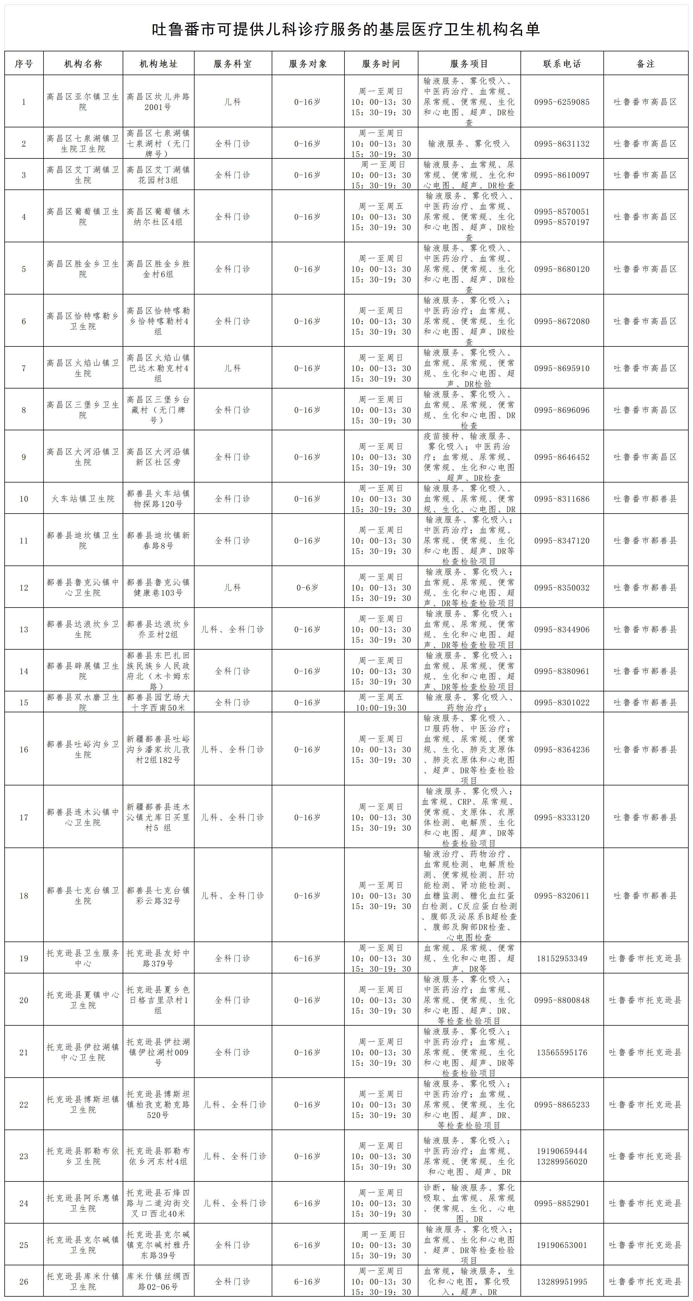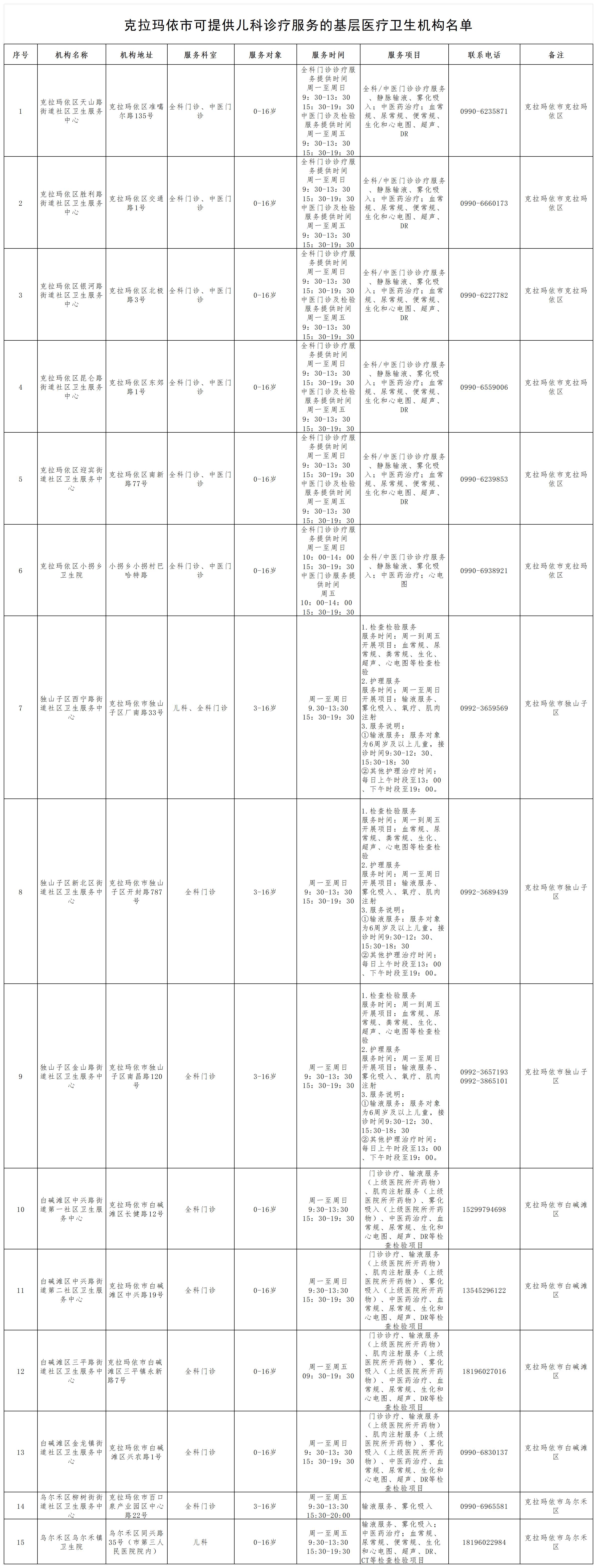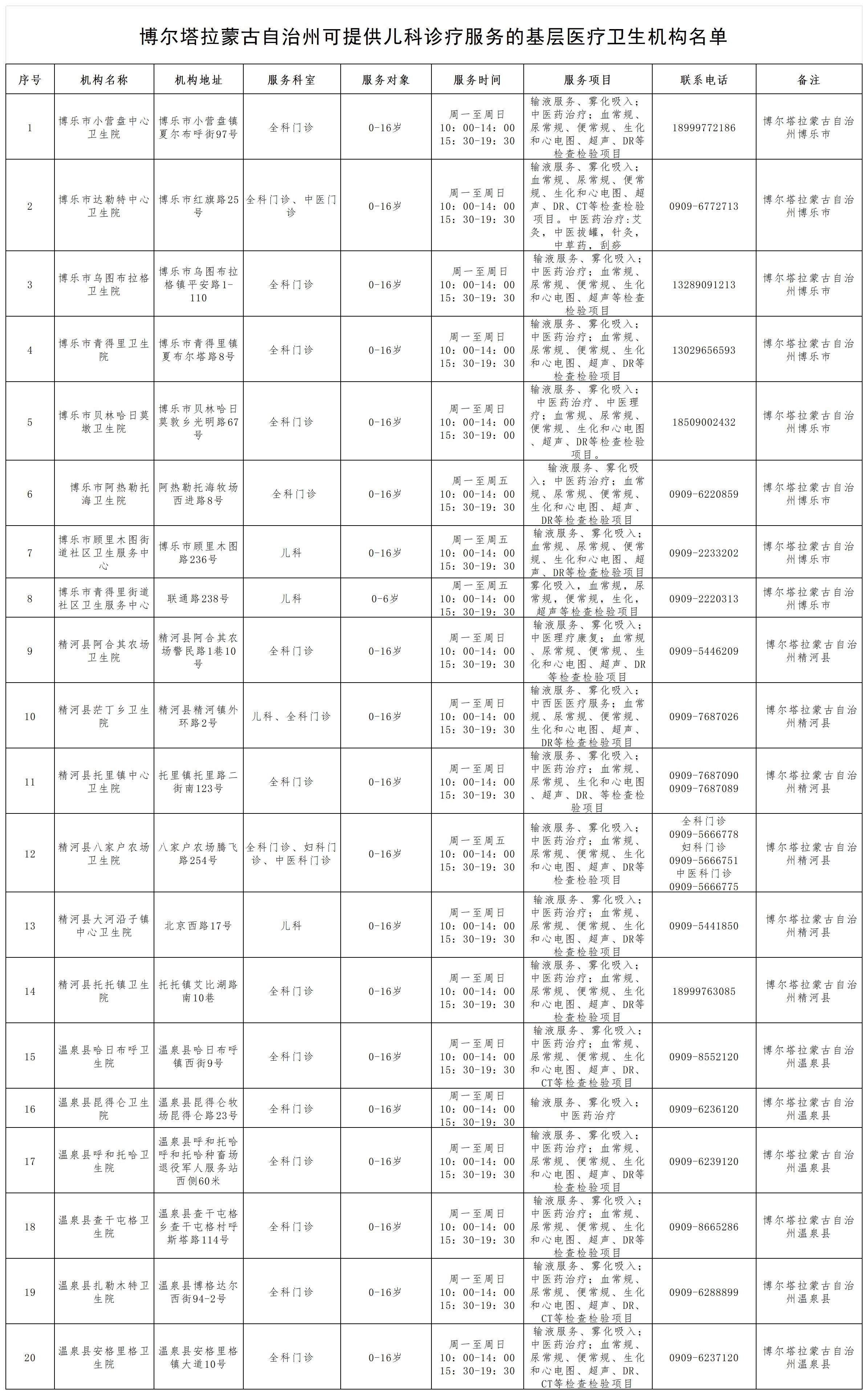 石榴云/新疆日报讯(记者 苏璐萍报道)为保障和方便儿童患者就近获取诊疗服务,日前,自治区卫生健康委公布14个地(州、市)可提供儿科诊疗服务的乡镇卫生院和社区卫生服务中心名单,涵盖服务时间、服务项目及联系电话等详细信息。