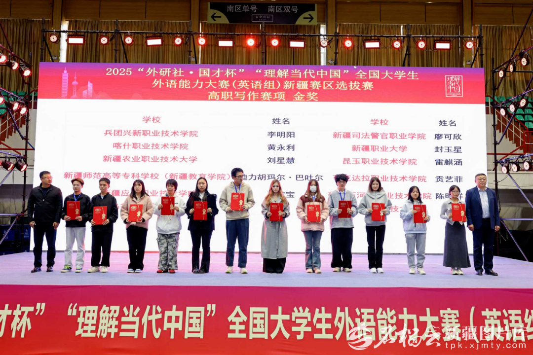 11月2日,2025年“外研社·国才杯”“理解当代中国”全国大学生外语能力大赛(英语组)新疆赛区选拔赛,高职写作赛项金奖颁奖典礼现场。石河子大学供图