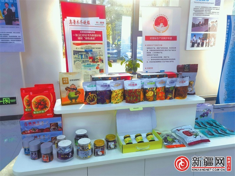 11月3日,新疆标检产品检测认证有限公司一楼展厅展示获得香港优质「正」印认证证书的新疆商标和产品。(记者李宁艳摄)