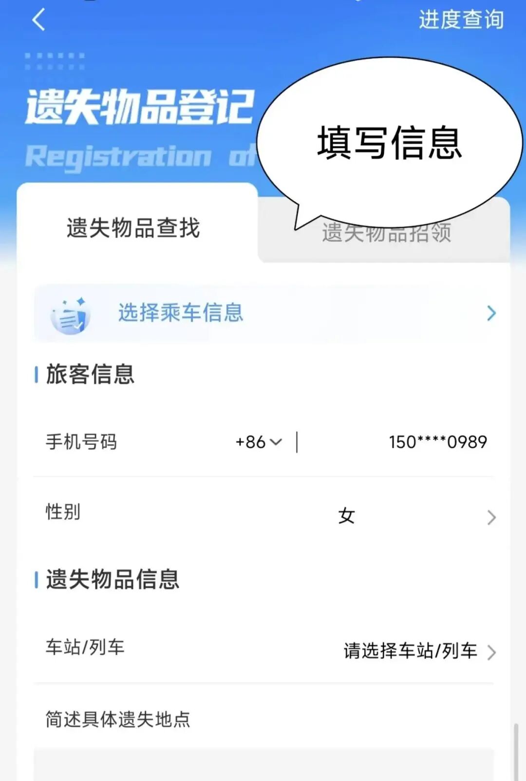 准确填写乘车信息,无论是高铁还是普速列车,选择对应的乘车订单,系统会快速定位遗失场景。