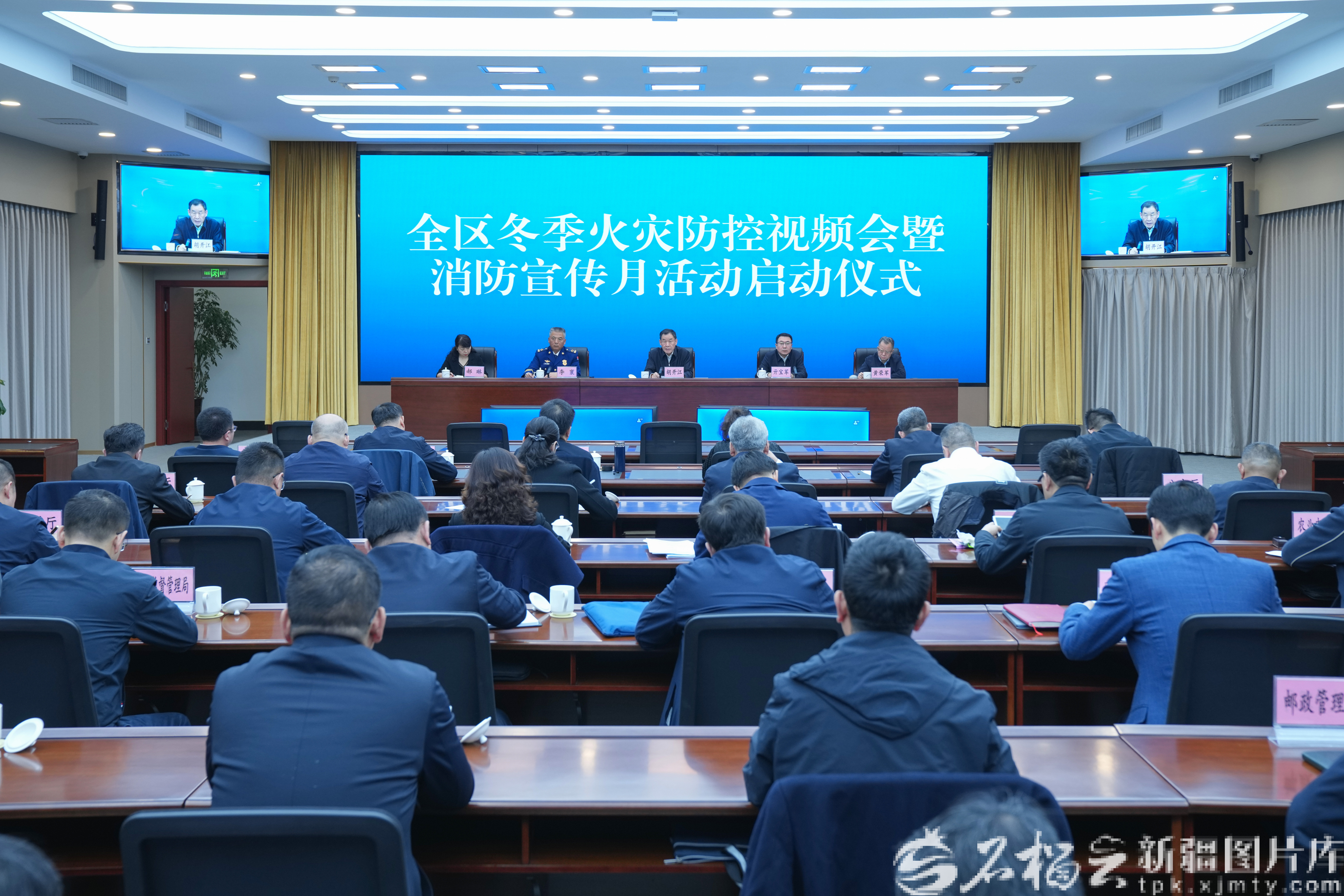 11月4日,全区冬季火灾防控视频会暨消防宣传月活动启动仪式在乌鲁木齐举行。马振彪摄