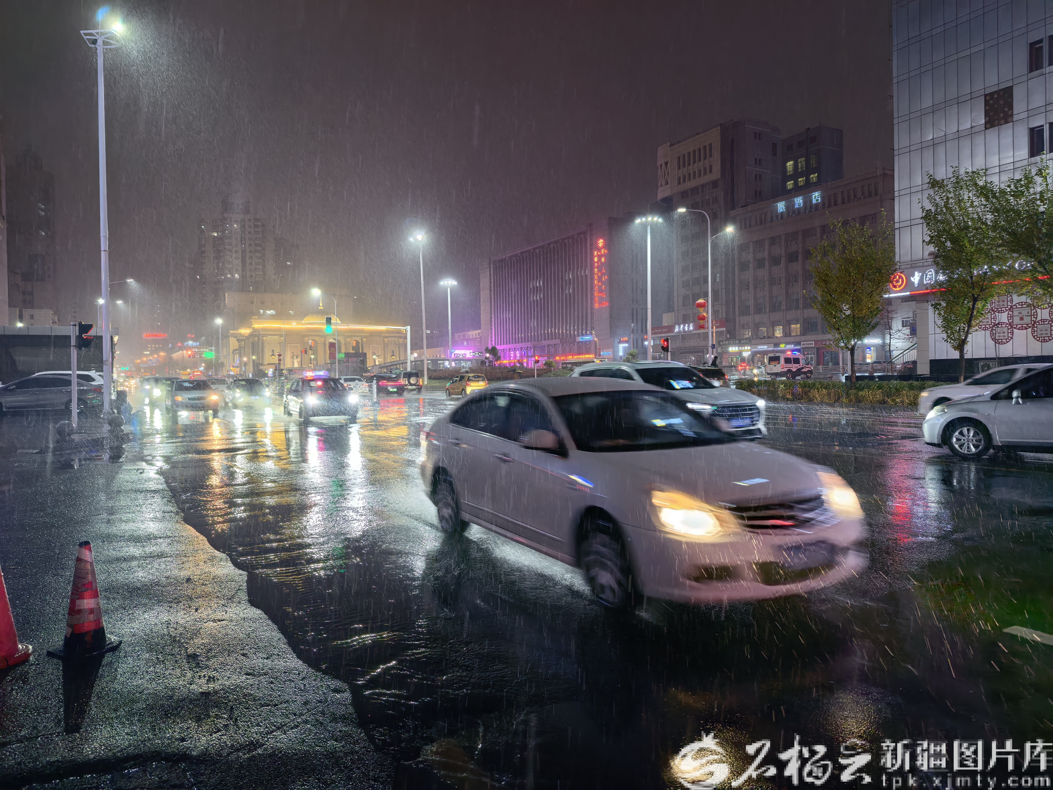 11月5日,车辆行驶在雪中的乌鲁木齐街头。石榴云/新疆日报记者 谢慧变摄