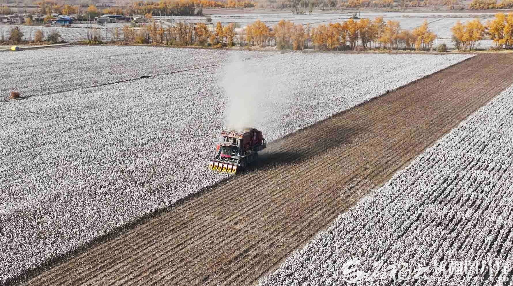 11月5日,巴音郭楞蒙古自治州尉犁县团结镇西海子村的高标准农田里,一台六行自走式国产采棉机来回穿梭采棉。作为“国家级优质商品棉基地”和“全国棉花生产百强县”,尉犁县近年来以科技为翼,通过品种改良、模式创新、全程机械化等举措,推动棉花产业实现产量、效益双提升。