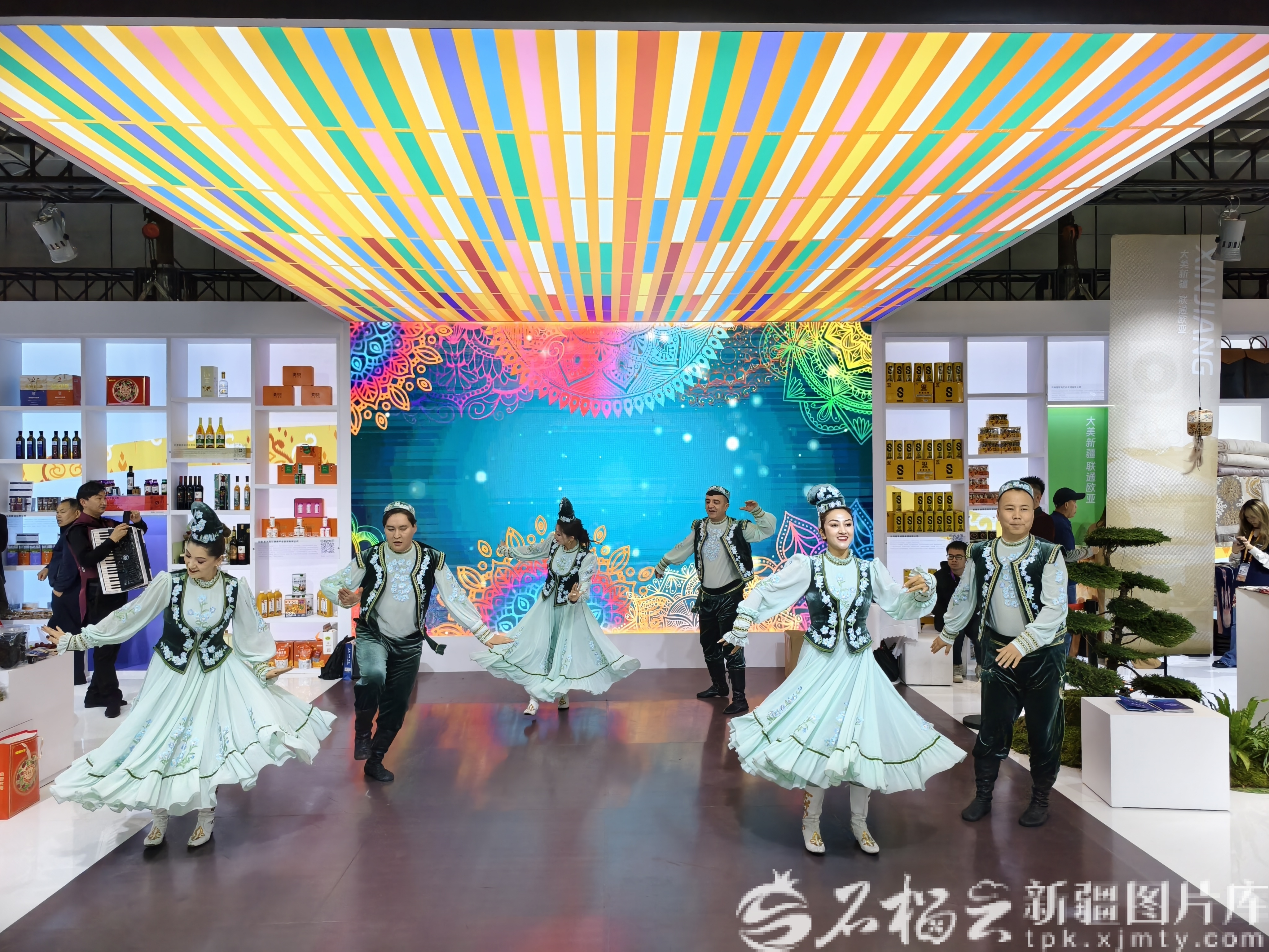 11月7日,第八届中国国际进口博览会新疆展厅内掌声与赞叹声此起彼伏,塔城歌舞团带来的专场演出吸引了大批观众驻足观赏,成为展厅内最亮眼的风景线。