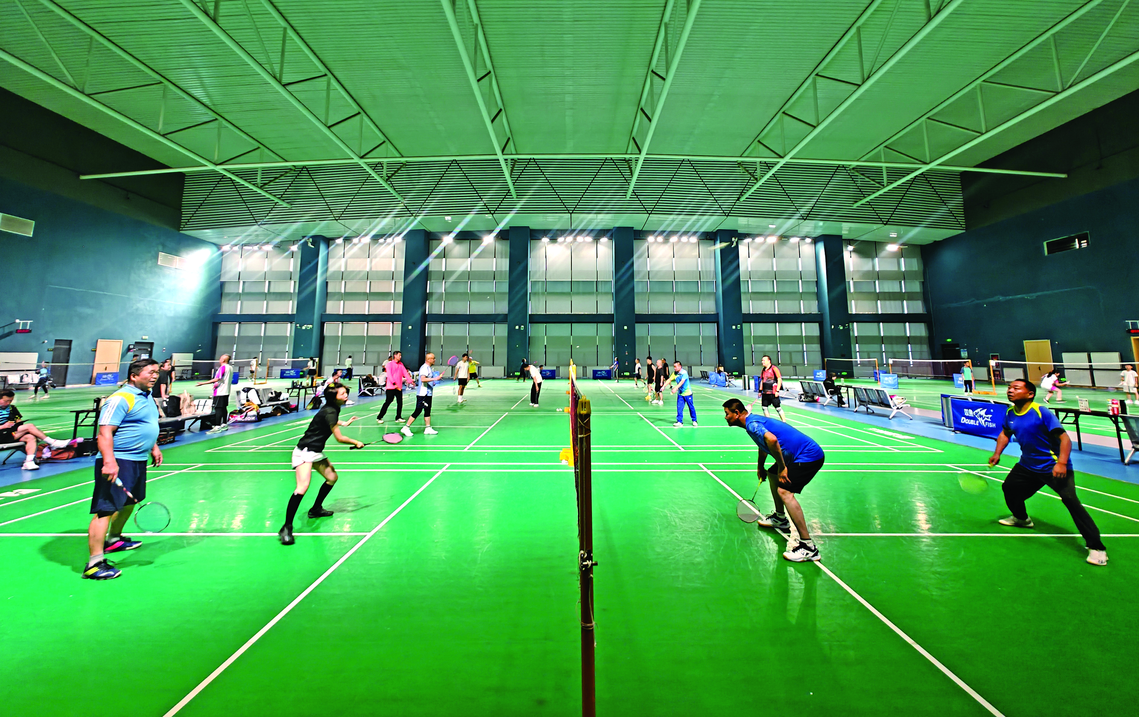 公众在乌鲁木齐奥林匹克体育中心全民健身馆打羽毛球。