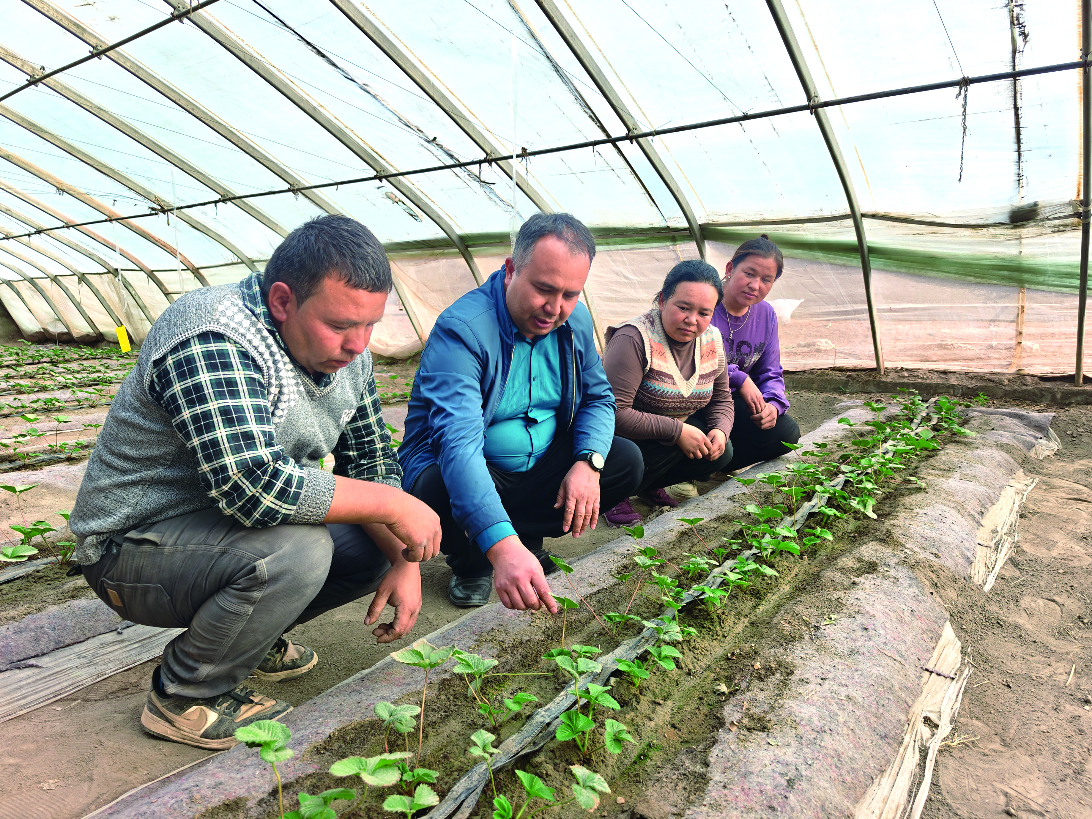 在伽师县农业技术推广中心的草莓种植大棚里,翠绿的草莓苗整齐排列,农业技术推广研究员买买提吐尔逊·阿布拉轻轻托起一株草莓苗,耐心地为围拢在身边的农民讲解如何修剪草莓侧枝:“这些多余的侧枝会分散养分,就像家里孩子多了,每个都吃不饱。”接地气的话语,让科学种植通俗易懂。