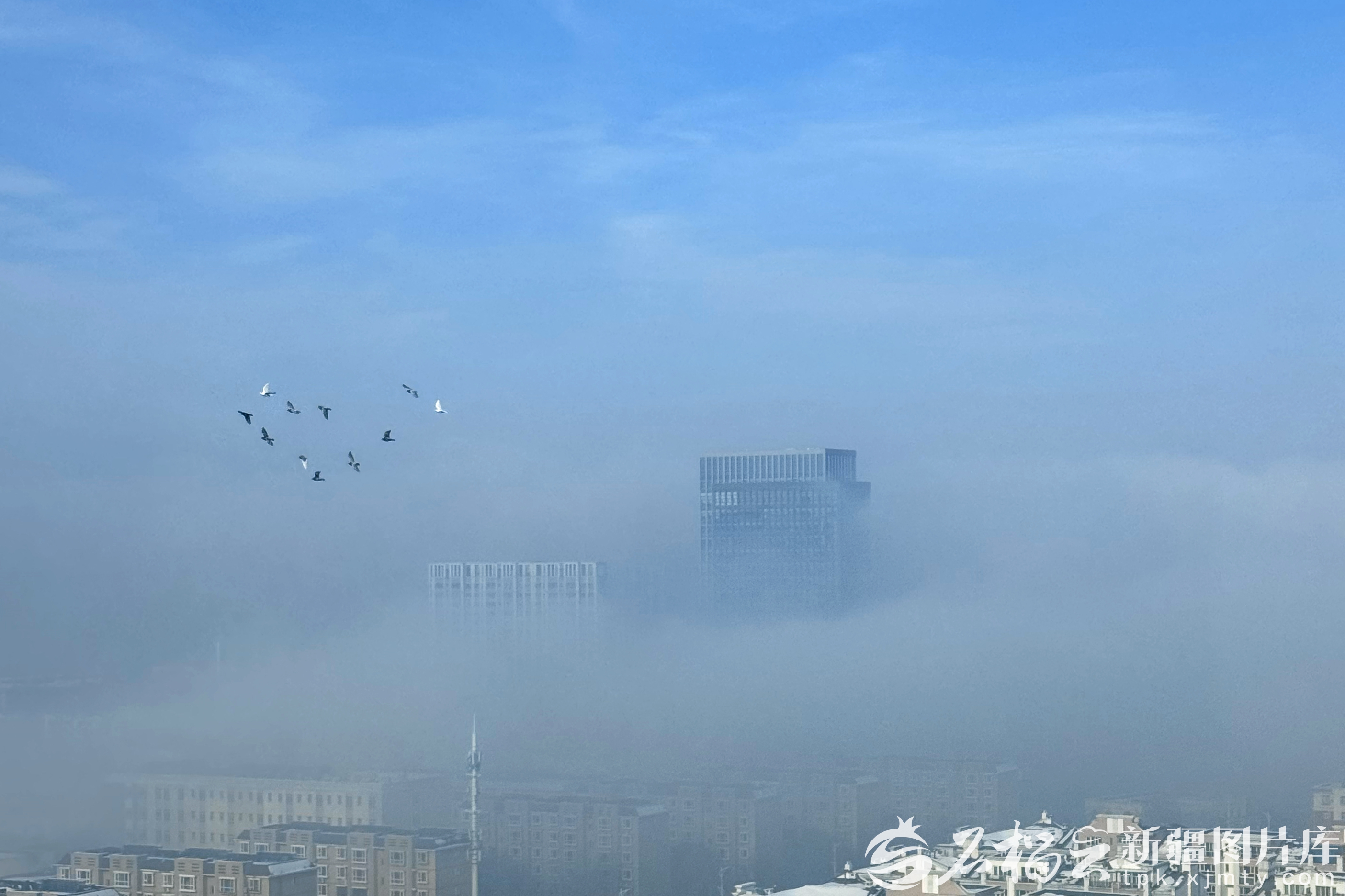 11月10日11时30分许,乌鲁木齐高新区(新市区),雾气已经升起。石榴云/新疆日报记者 杨伟摄