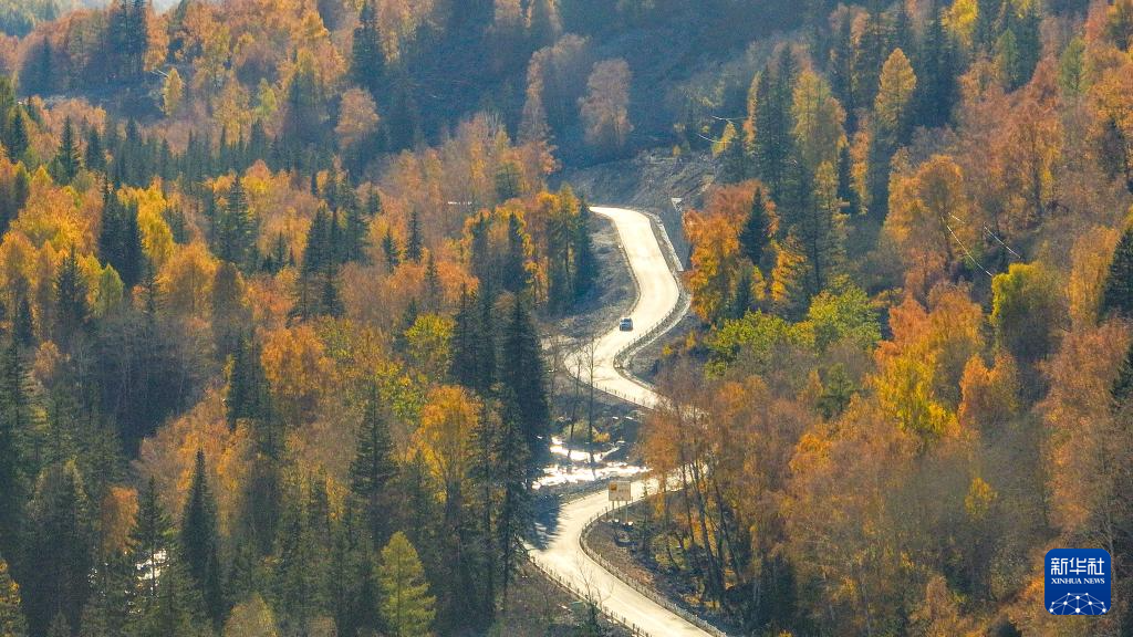 这是10月2日在新疆阿勒泰拍摄的阿禾公路沿途风景(无人机照片)。