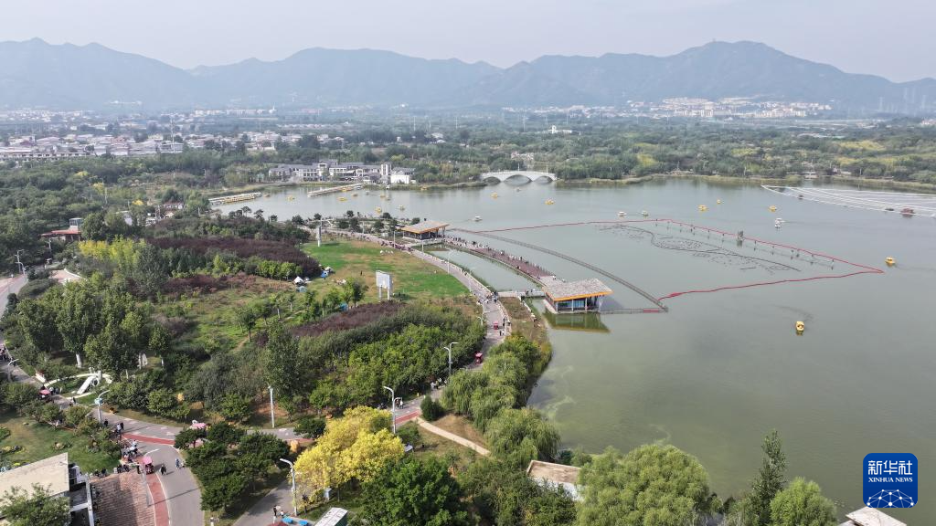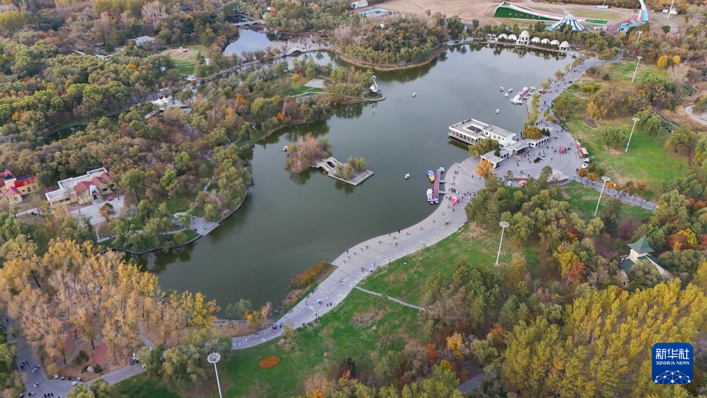 这是河北省石家庄市龙泉湖公园(10月7日摄,无人机照片)。