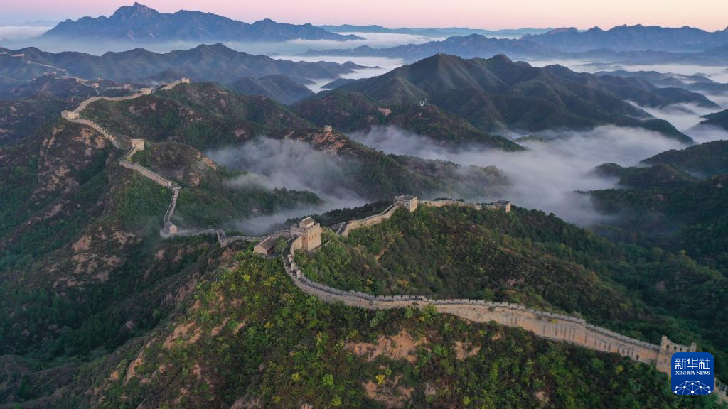 这是10月7日在河北省承德市滦平县拍摄的金山岭长城云海景观(无人机照片)。