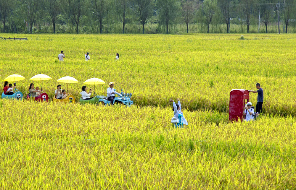 10月5日,游客在湖北省恩施市白果乡“塘里堂外”农文旅田园综合体游览。新华社发(谭华摄)