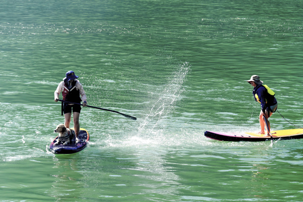10月4日,游客在云南大理南涧彝族自治县公郎镇猛龙渡体验桨板。新华社发(适志宏摄)