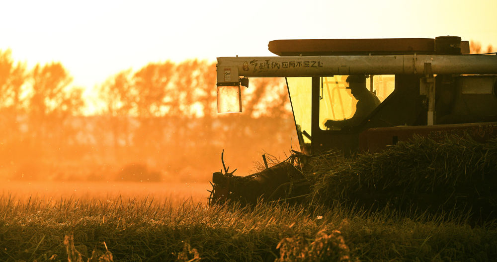 10月3日,农户在北大荒集团黑龙江八五六农场有限公司第五管理区抢收水稻(无人机照片)。新华社发(黄永兴摄)