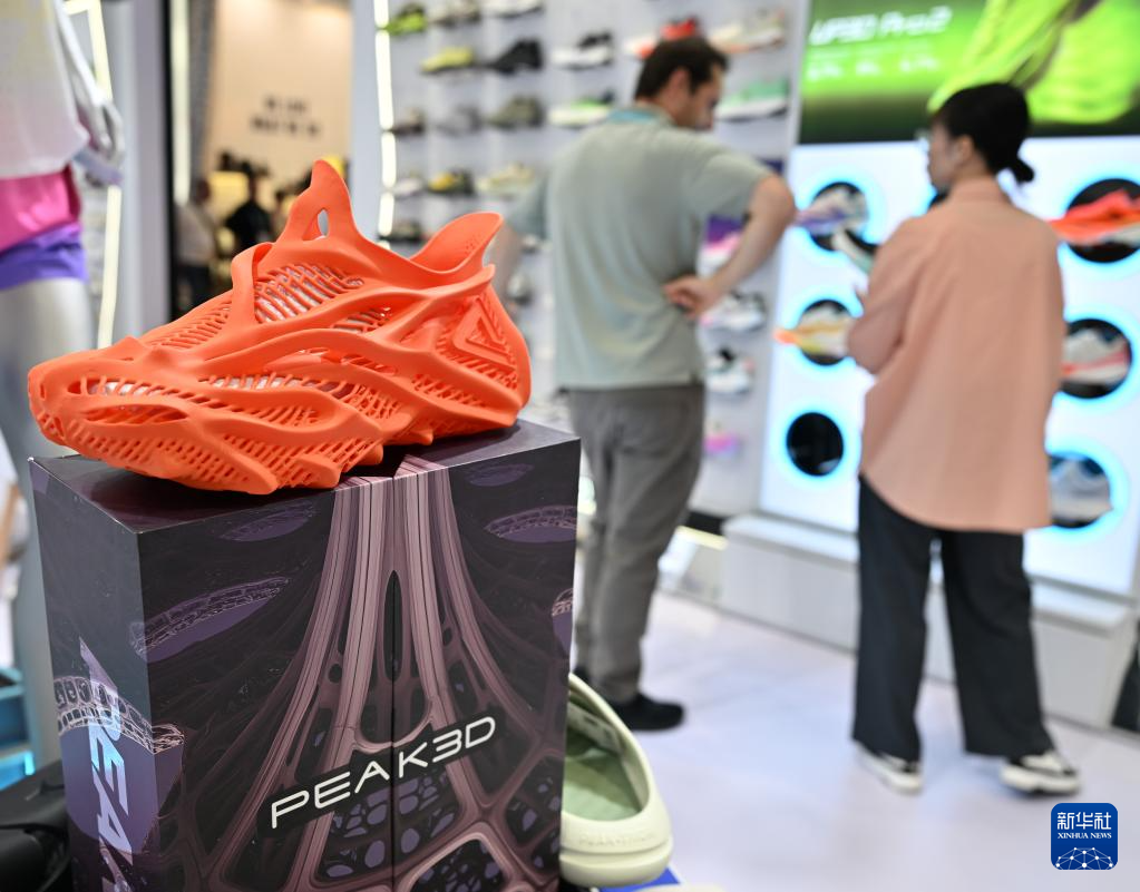 11月3日在广交会展馆拍摄的匹克3D打印健步鞋。新华社记者 肖恩楠 摄