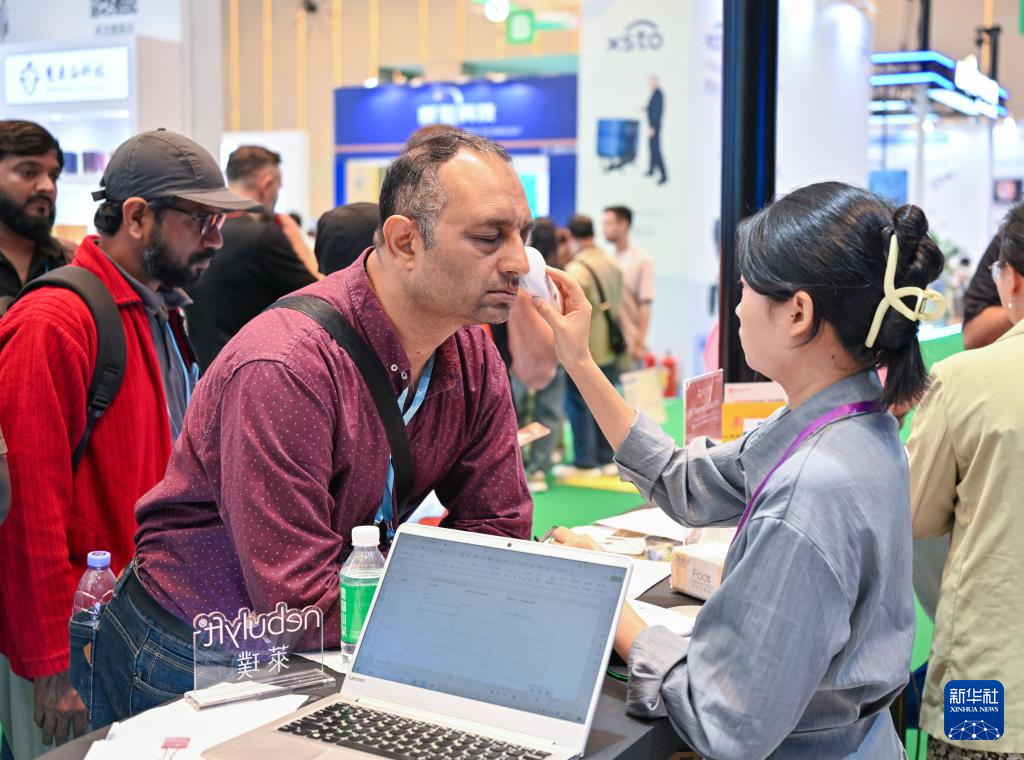 11月3日,客商在广交会展馆体验一款美容产品。新华社记者 肖恩楠 摄