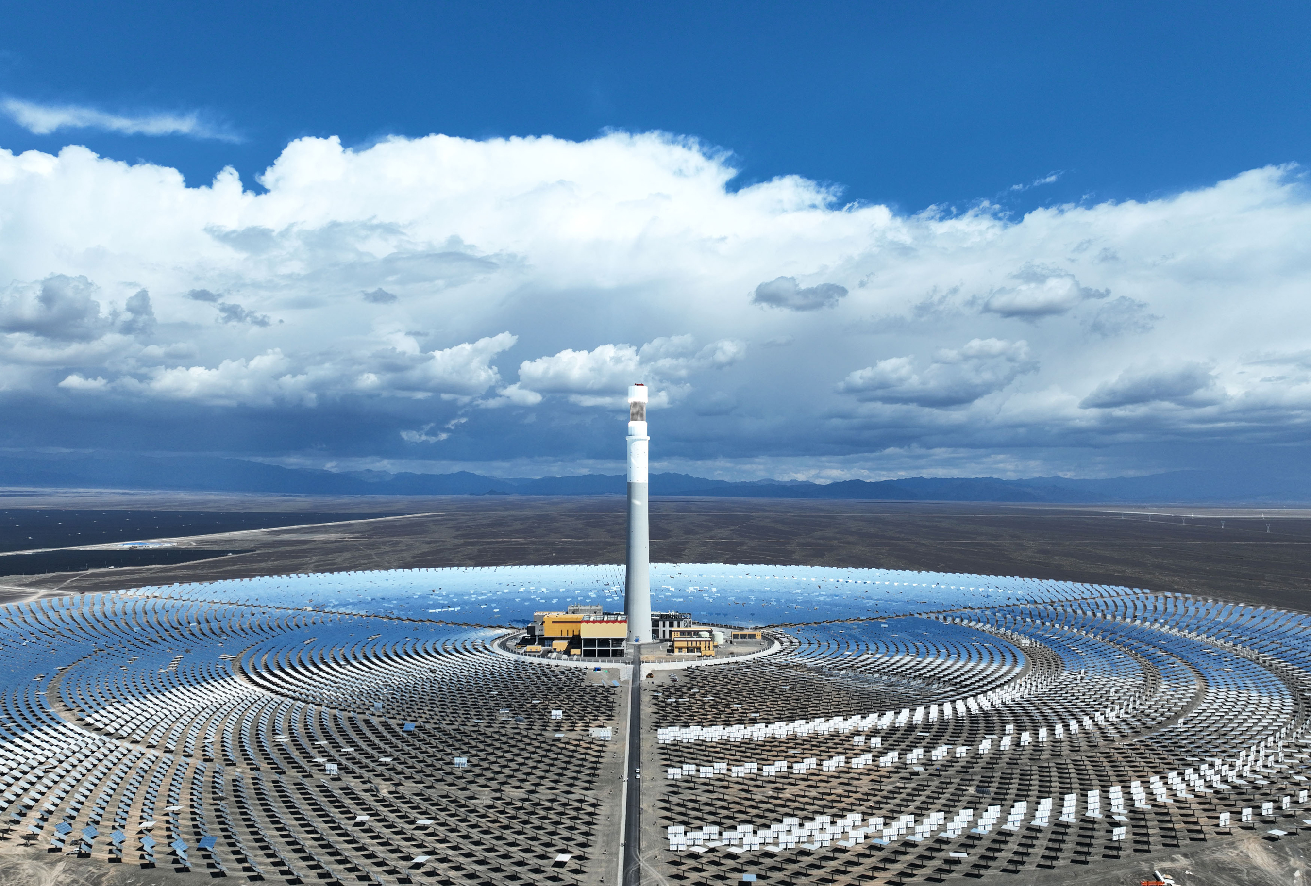 8月20日,吐鲁番市融媒体中心记者刘健、刘字昂在国家电投吐鲁番1GW光热+光伏一体化项目现场拍摄了一组图片。连绵的光伏板如一片“蓝色海洋”铺展在戈壁滩上,光影交错间,绿色能源的脉动清晰可见。