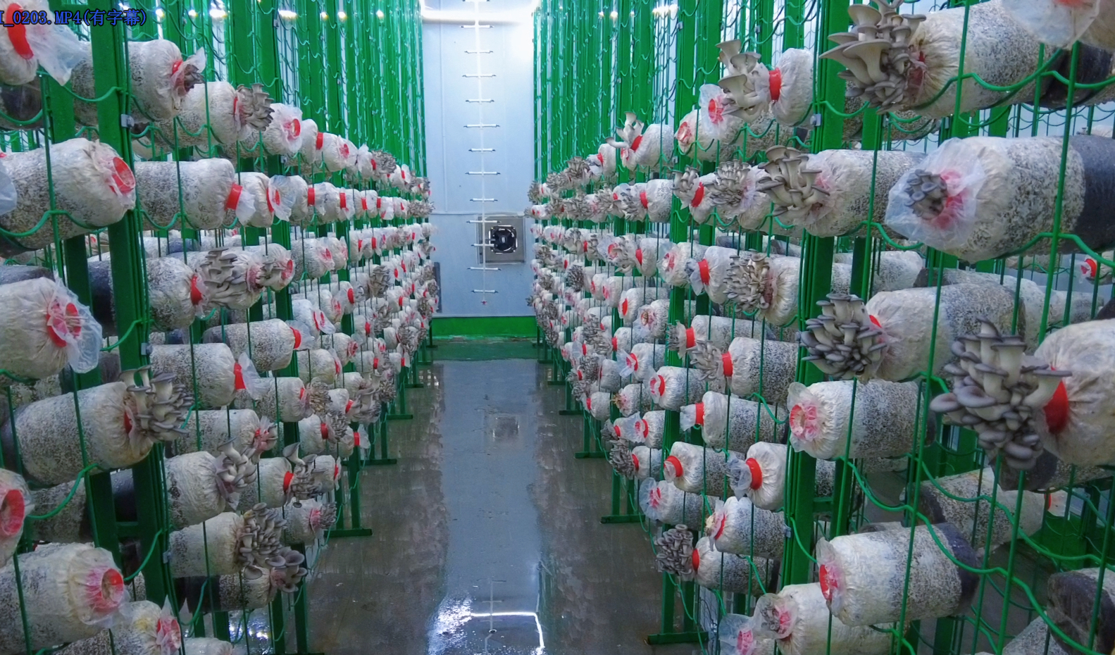 目前,该公司已建成并投产34间出菇房。自2025年起,这些出菇房陆续投入生产,主要种植平菇和灵芝,并试验其他高价值品种。截至目前,平菇产量已近500吨。