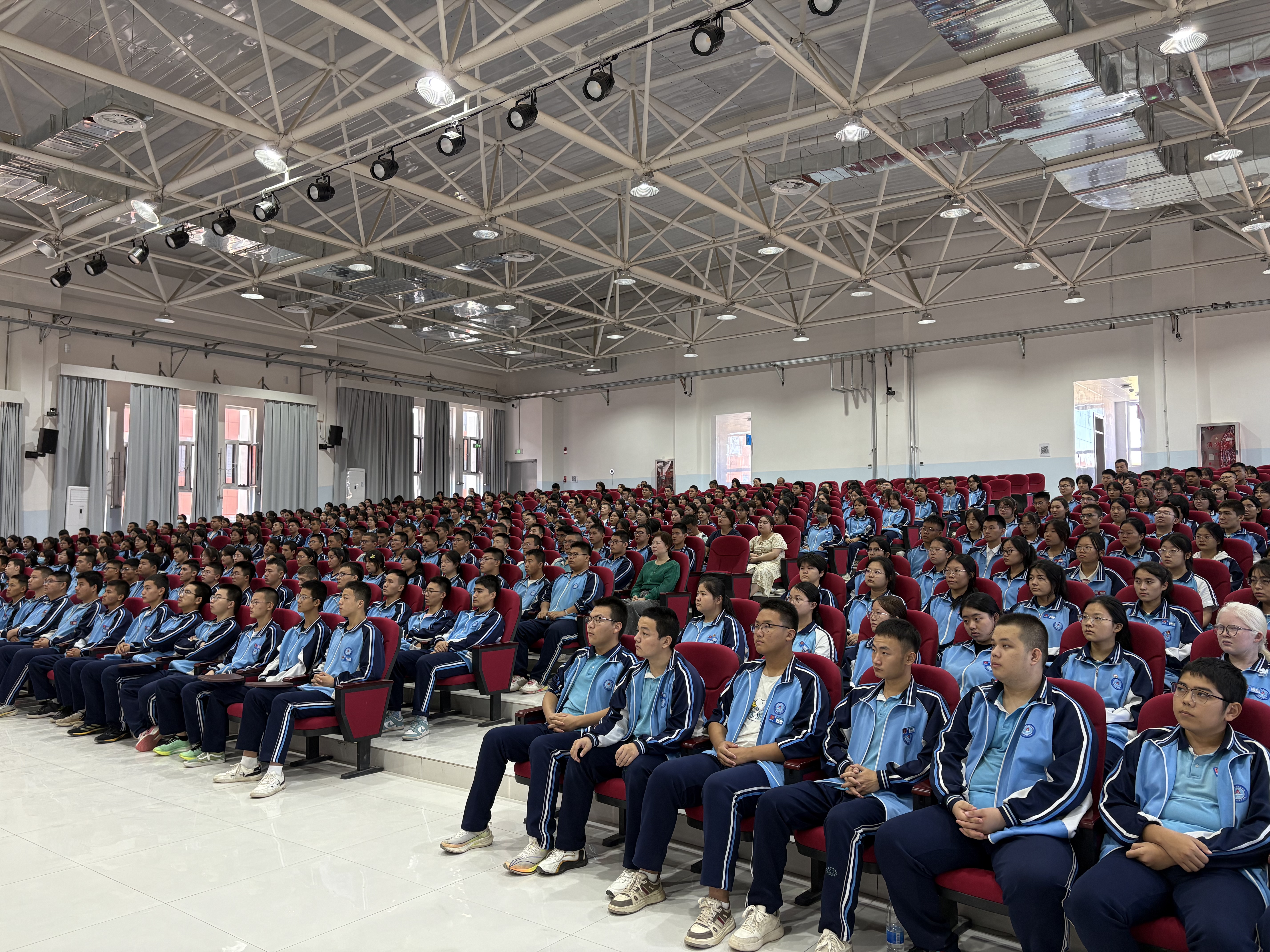 吐鲁番市实验中学师生观看大会直播。吐鲁番市融媒体中心记者 热合拉 摄