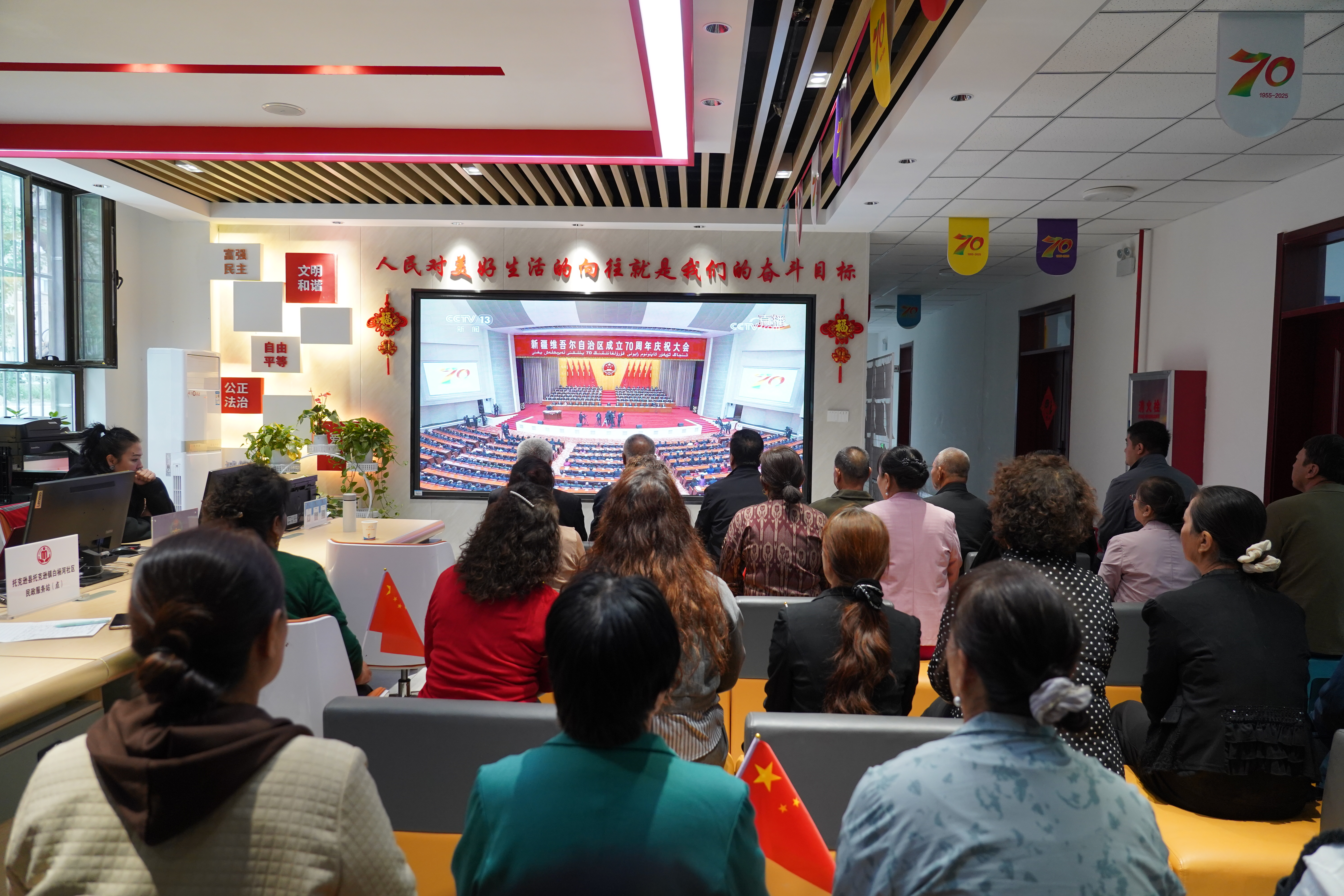 吐鲁番市融媒体中心讯 9月25日上午,新疆维吾尔自治区成立70周年庆祝大会在乌鲁木齐隆重举行。吐鲁番市各族干部群众通过电视、网络、手机客户端等多种途径,共同收听收看庆祝大会盛况,共同见证这一振奋人心的历史时刻。