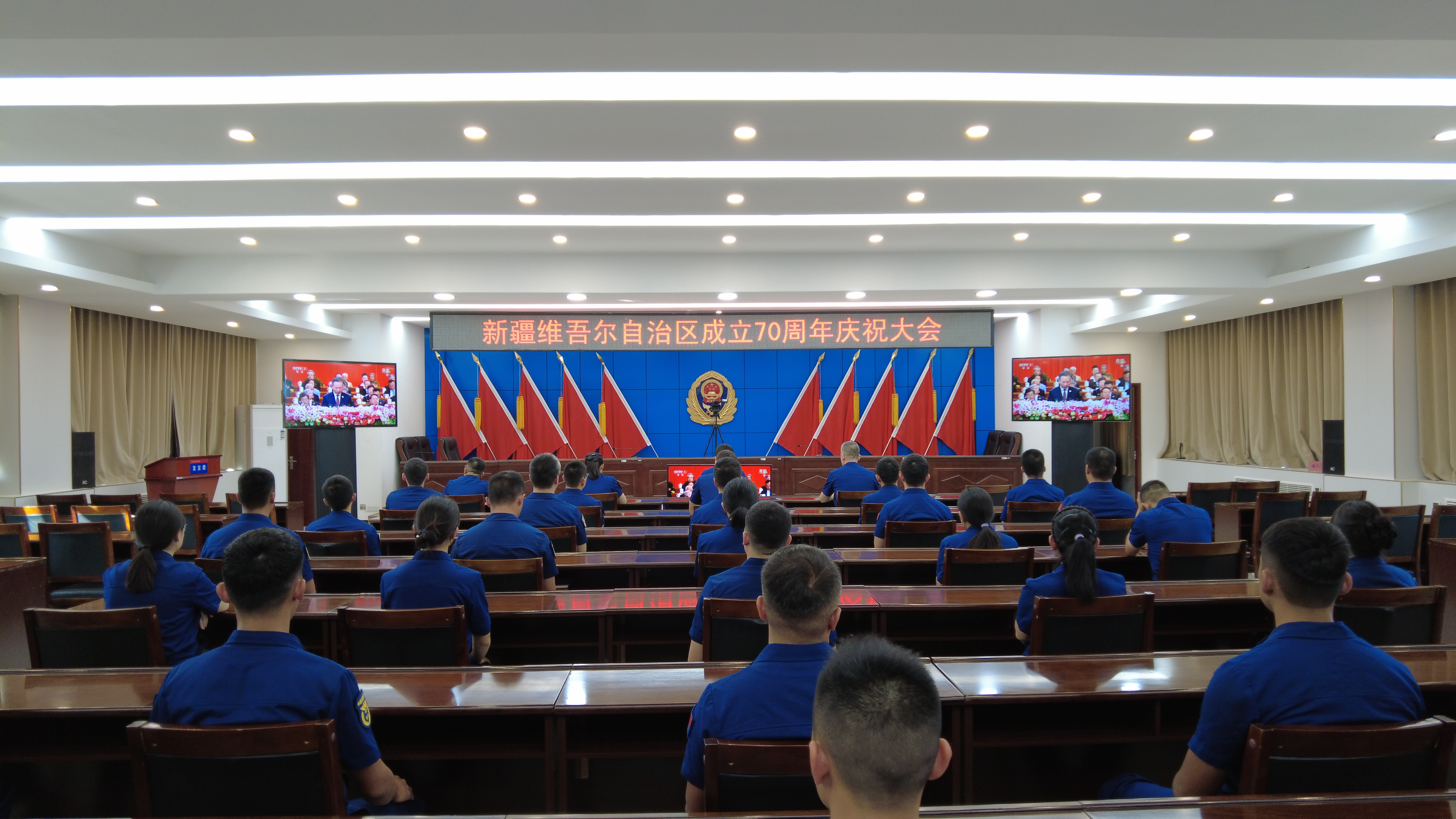 吐鲁番市消防救援支队组织全体消防指战员观看大会直播。吐鲁番市融媒体中心实习记者 余宗璞 摄