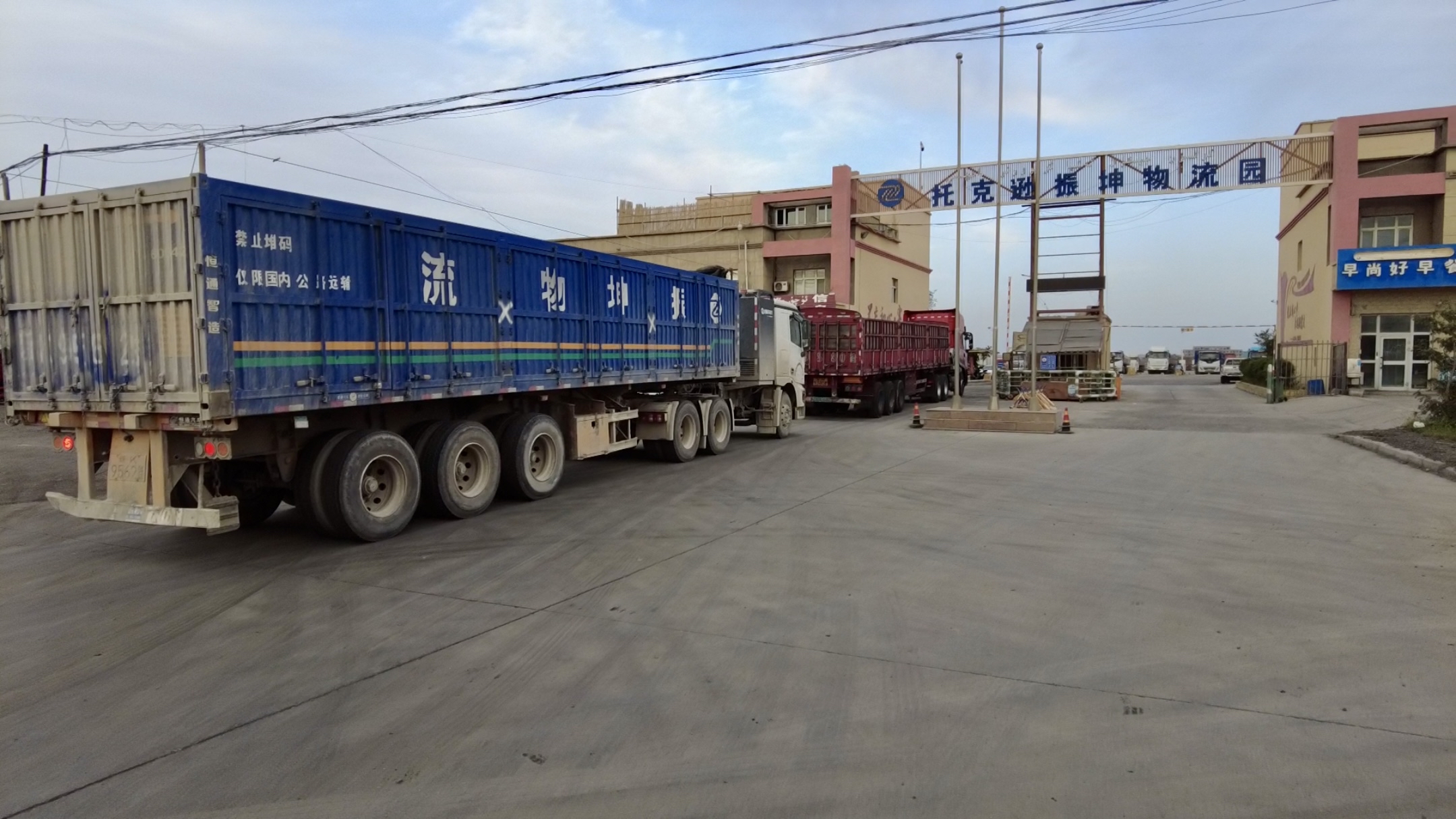 振坤物流公司物流园区运输车辆有序出入。吐鲁番市融媒体中心记者 买迪努尔 摄