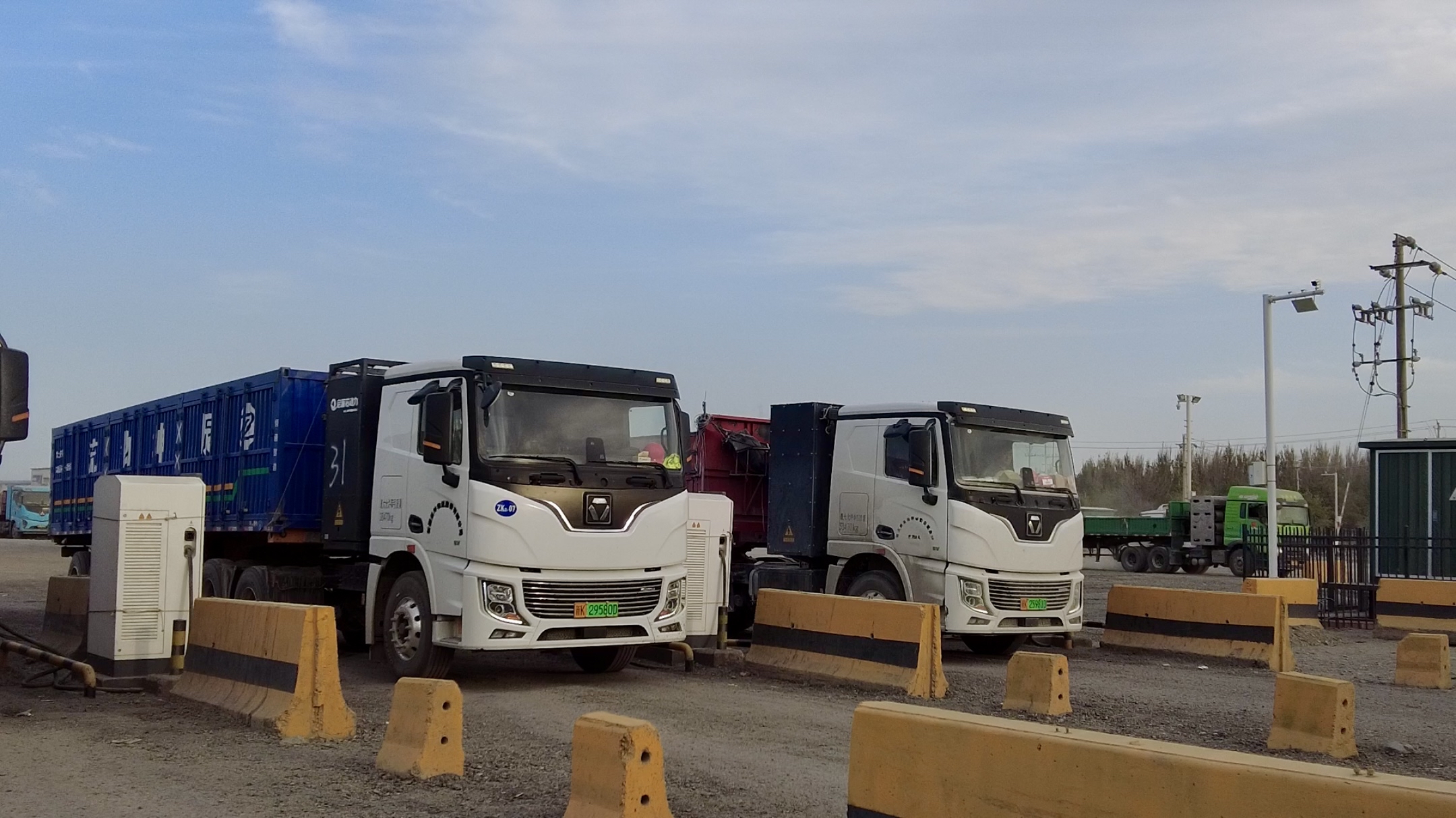 振坤物流公司物流园区货运车辆在充电。吐鲁番市融媒体中心记者 买迪努尔 摄