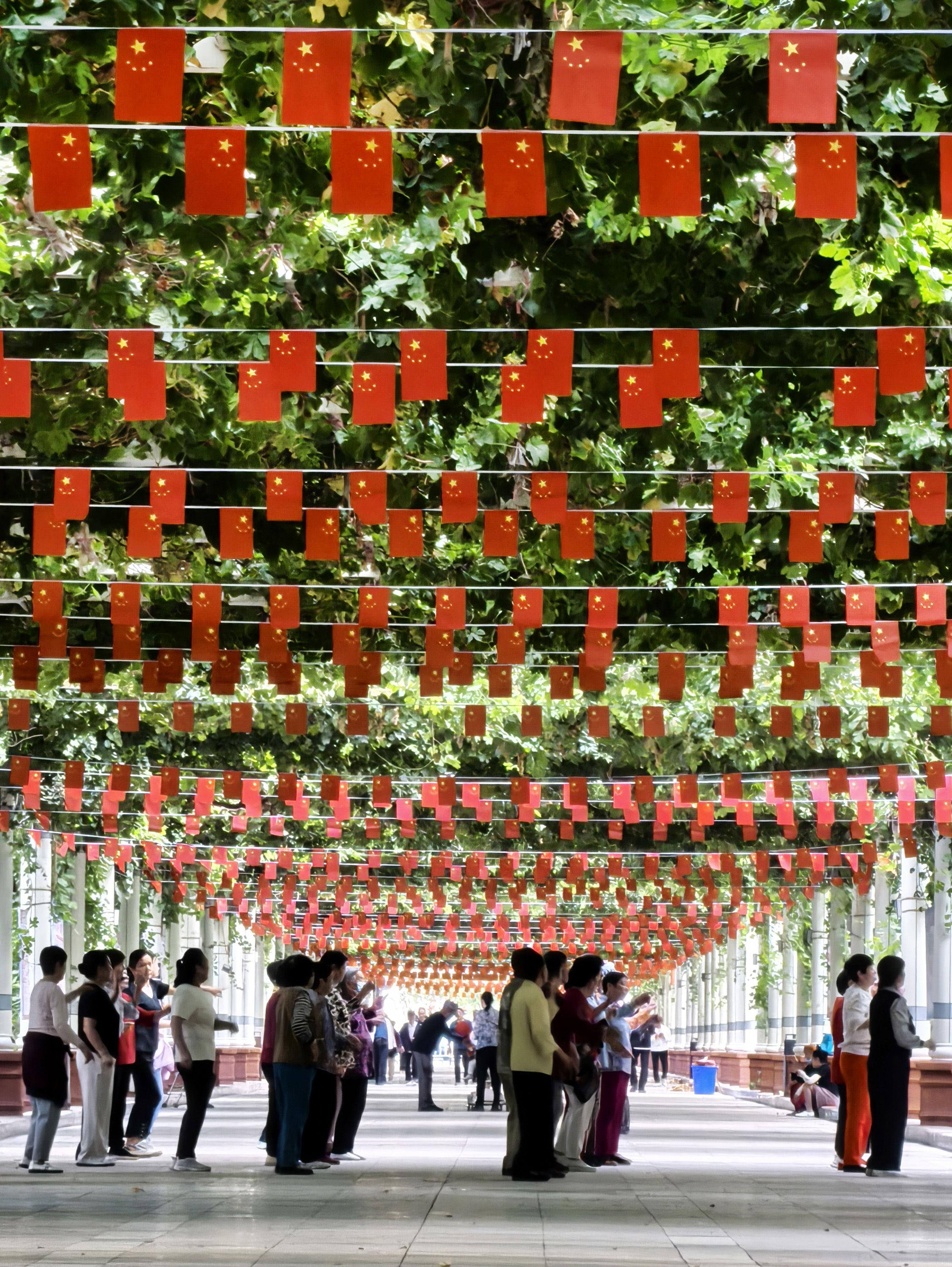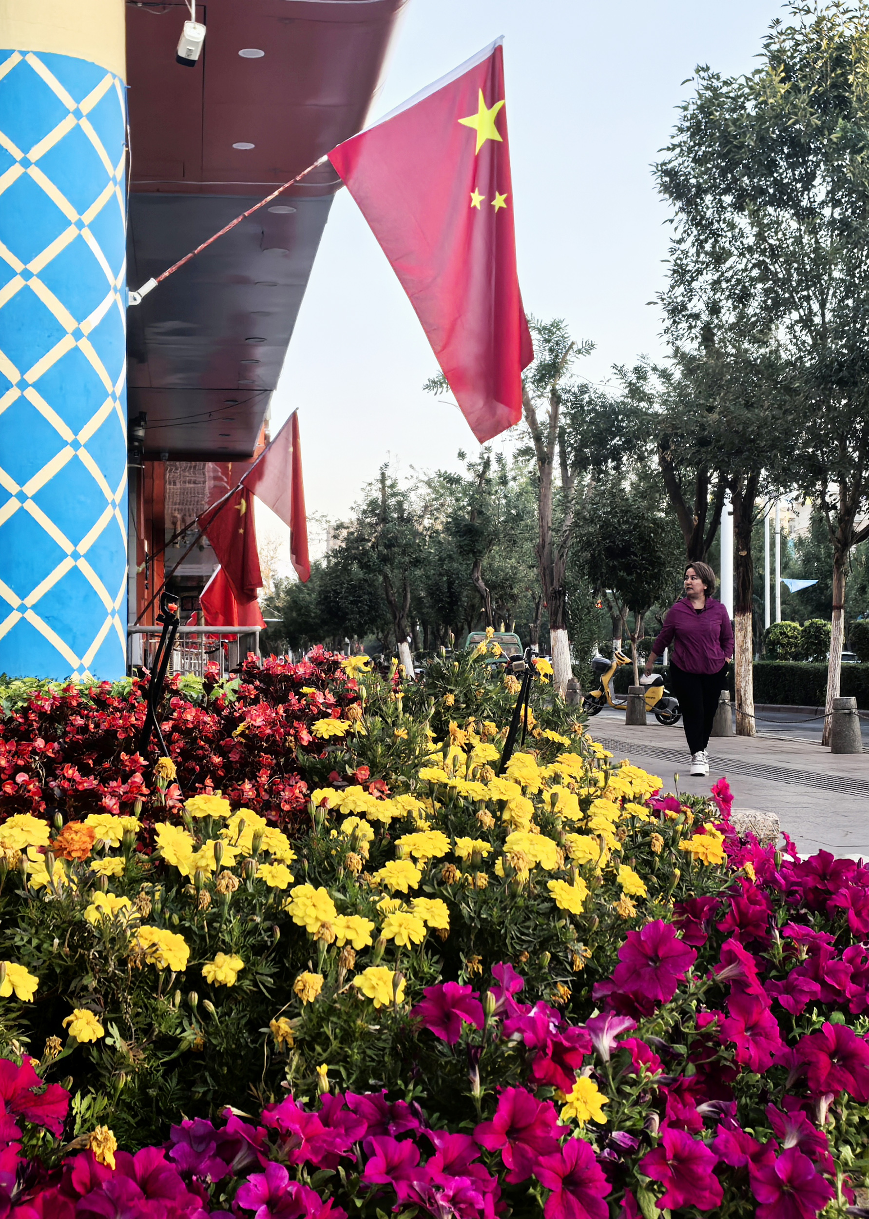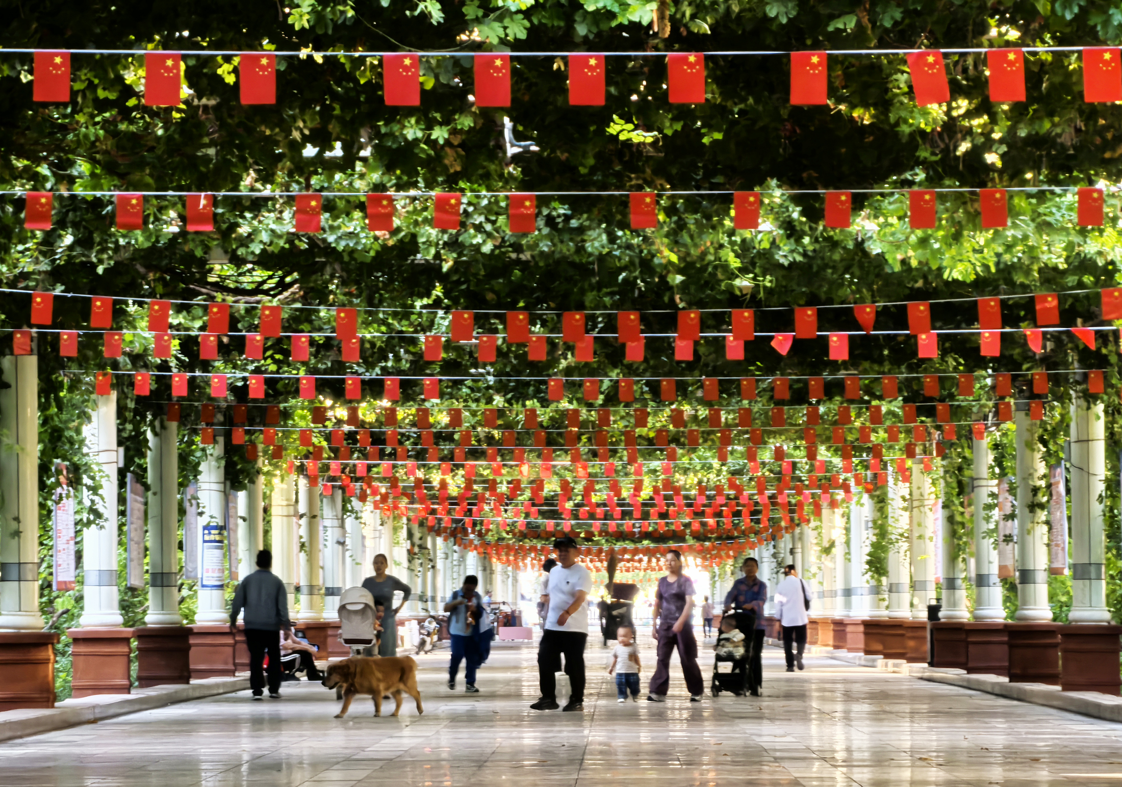 【图说吐鲁番】吐鲁番街头尽染“中国红” 满城盛装喜迎国庆