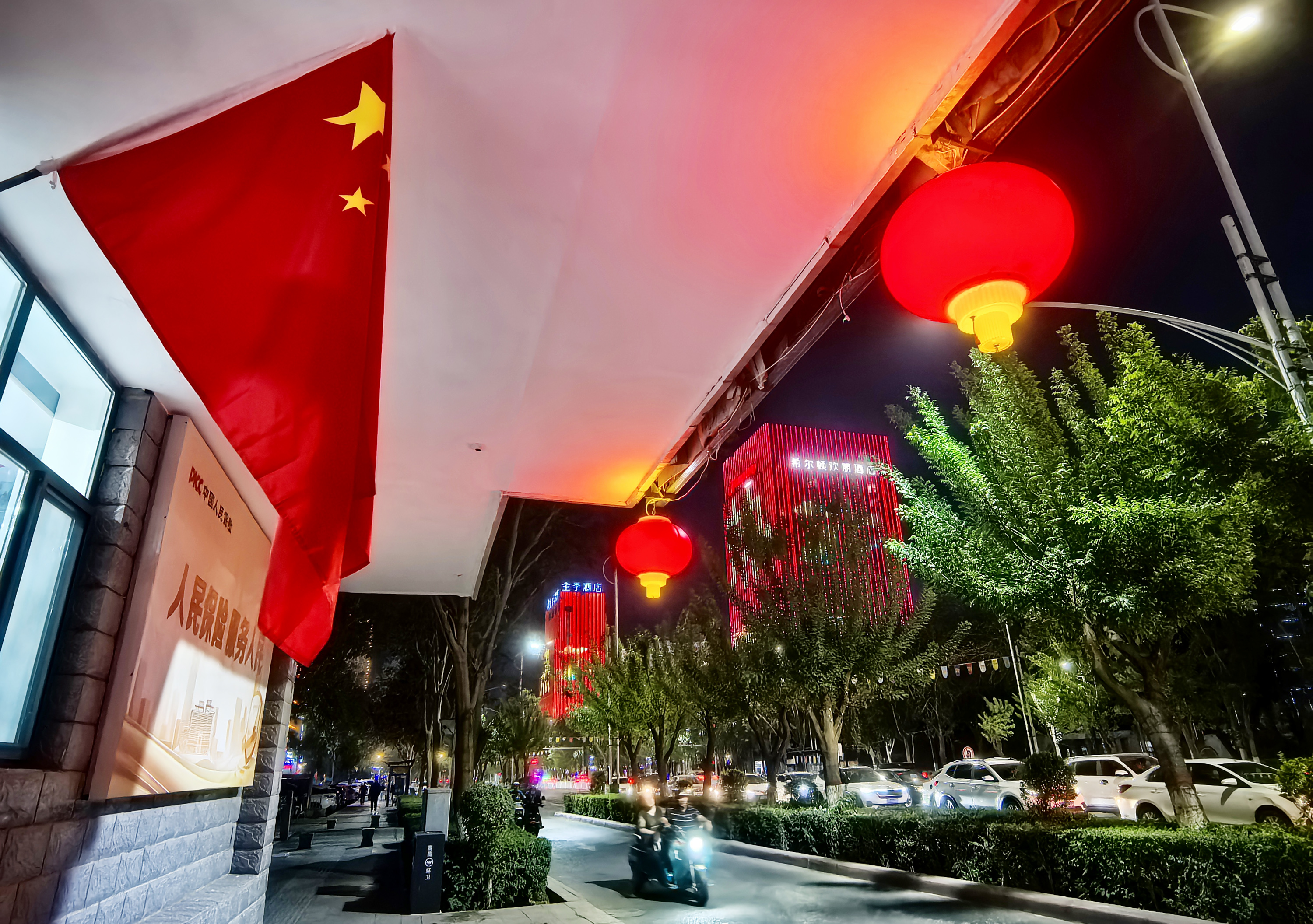 高昌区一单位门口,悬挂的五星红旗与大红灯笼,营造出浓厚的国庆节日氛围。 吐鲁番市融媒体中心记者 刘健 摄
