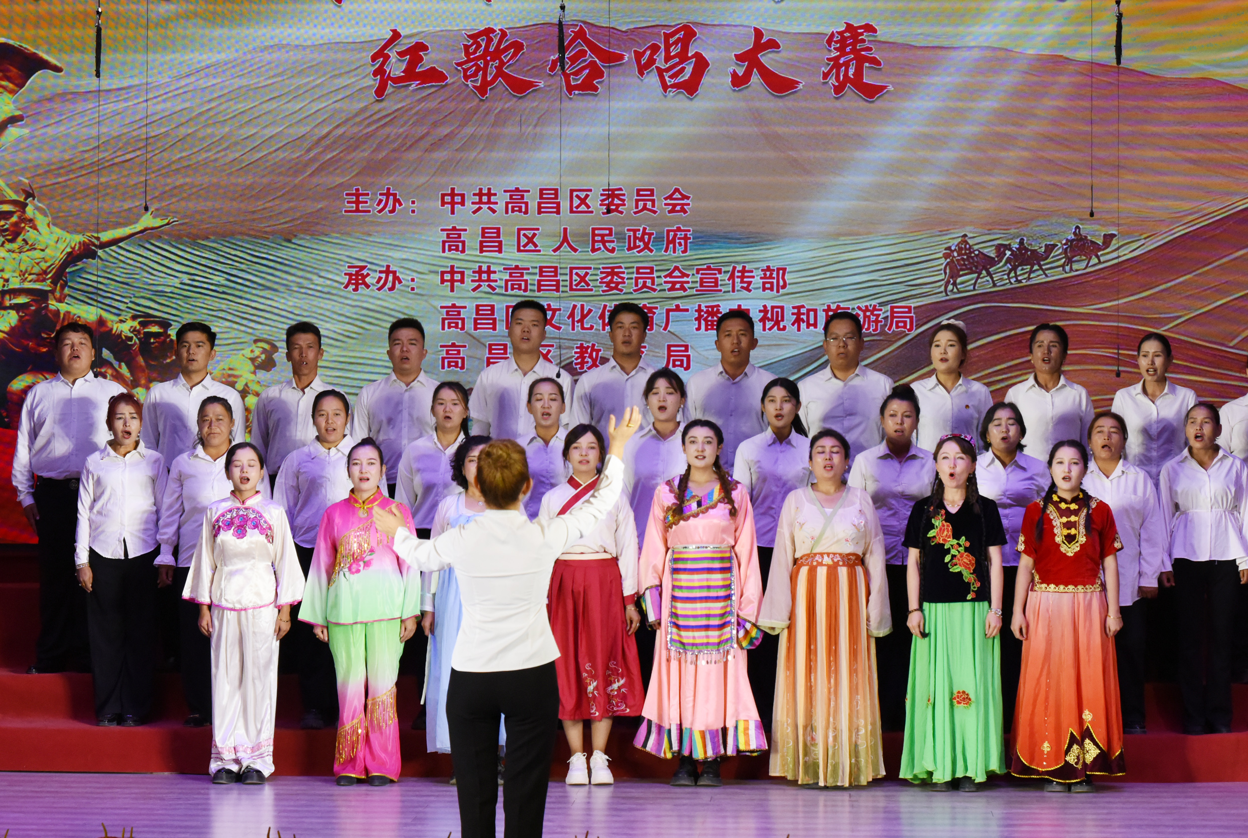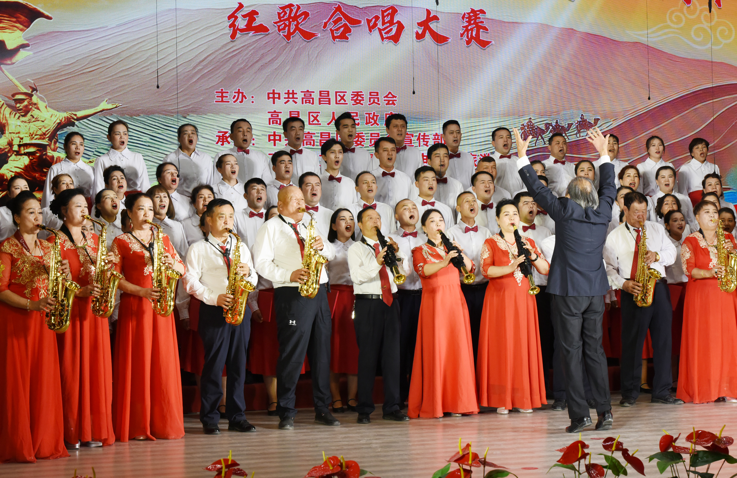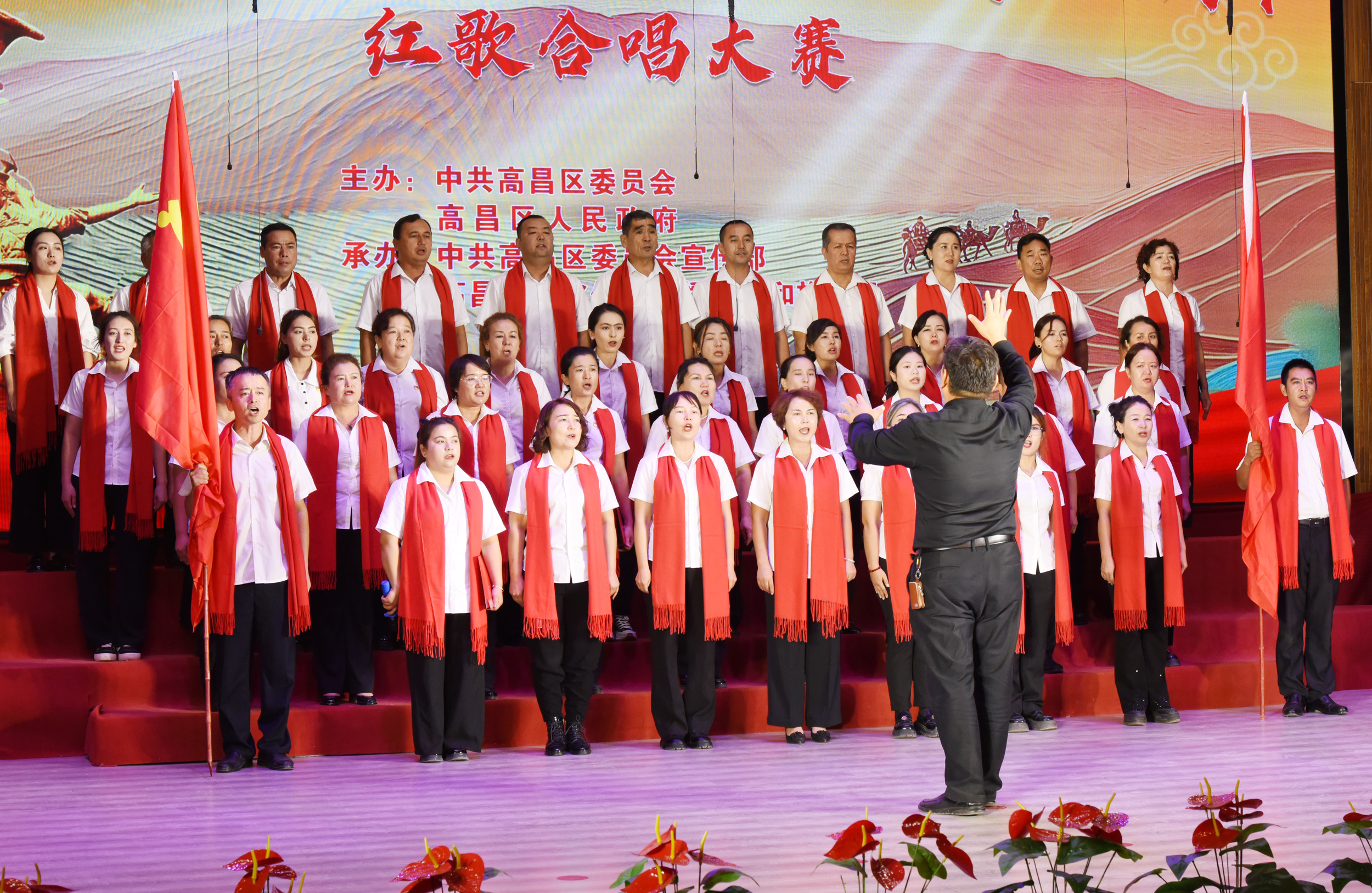 合唱《没有共产党就没有新中国》。吐鲁番市融媒体中心记者 刘健 摄