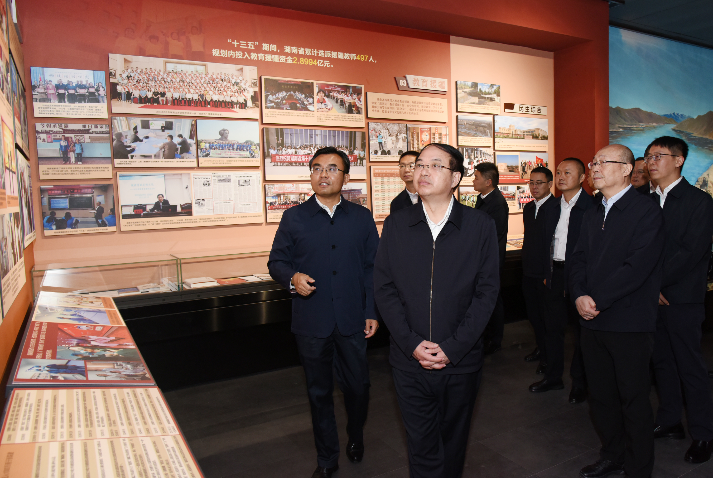 10月9日,吐鲁番市委书记文天平在湖南省援疆前方指挥部调研了解工作开展情况。这是文天平在湖南对口支援新疆历史陈列馆参观。吐鲁番市融媒体中心记者 刘健 摄