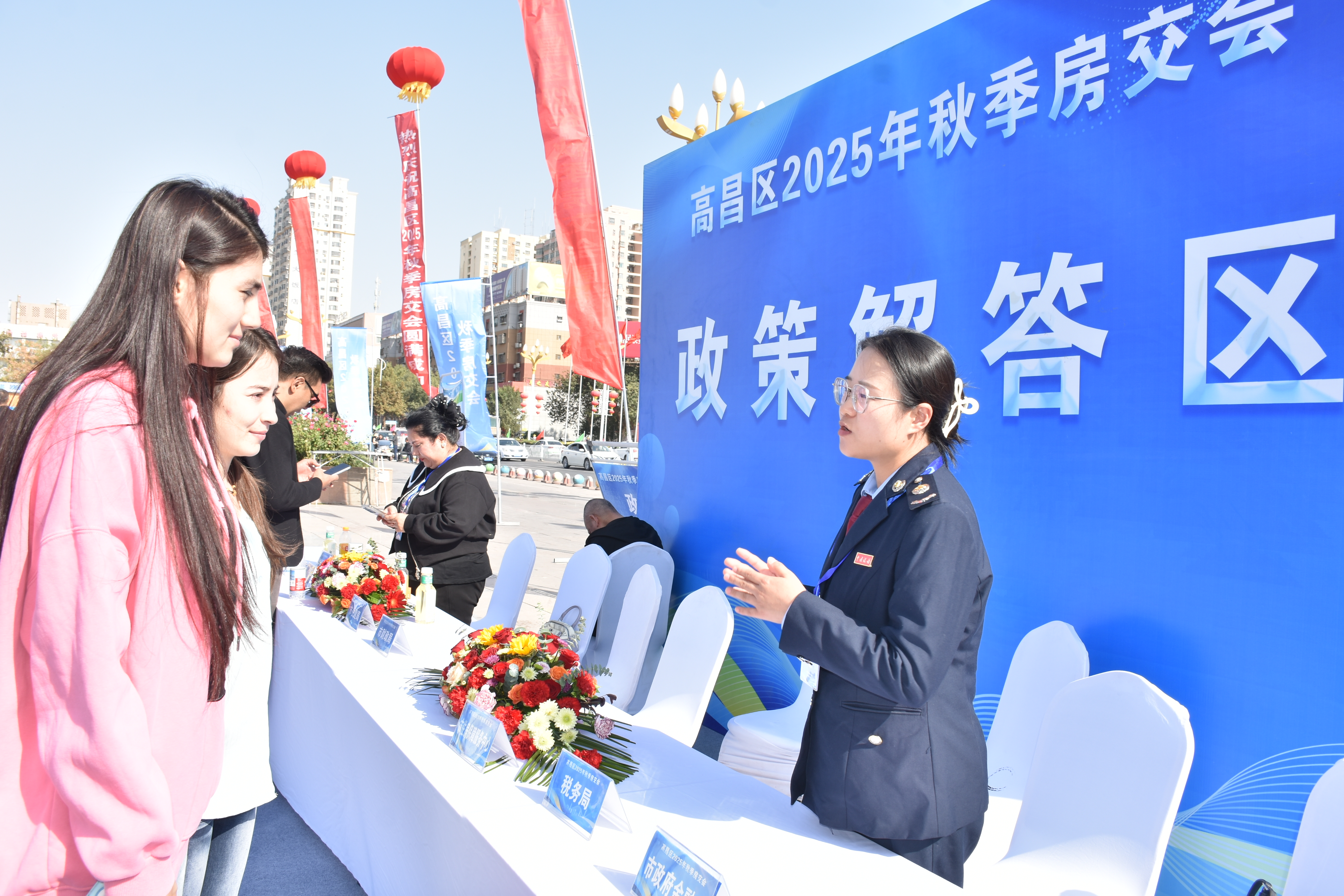 吐鲁番市融媒体中心讯(记者 阿地兰 阿丽亚)10月11日上午,高昌区2025年秋季房交会在旅游文化广场正式开幕。本次活动由高昌区人民政府主办,区住房和城乡建设局承办,以“逛金秋房展·享品质生活”为主题,采取“现场集中展示三天+各销售网点联动”方式,汇聚多家房企、装修公司、金融机构等,为市民提供一站式置业服务。