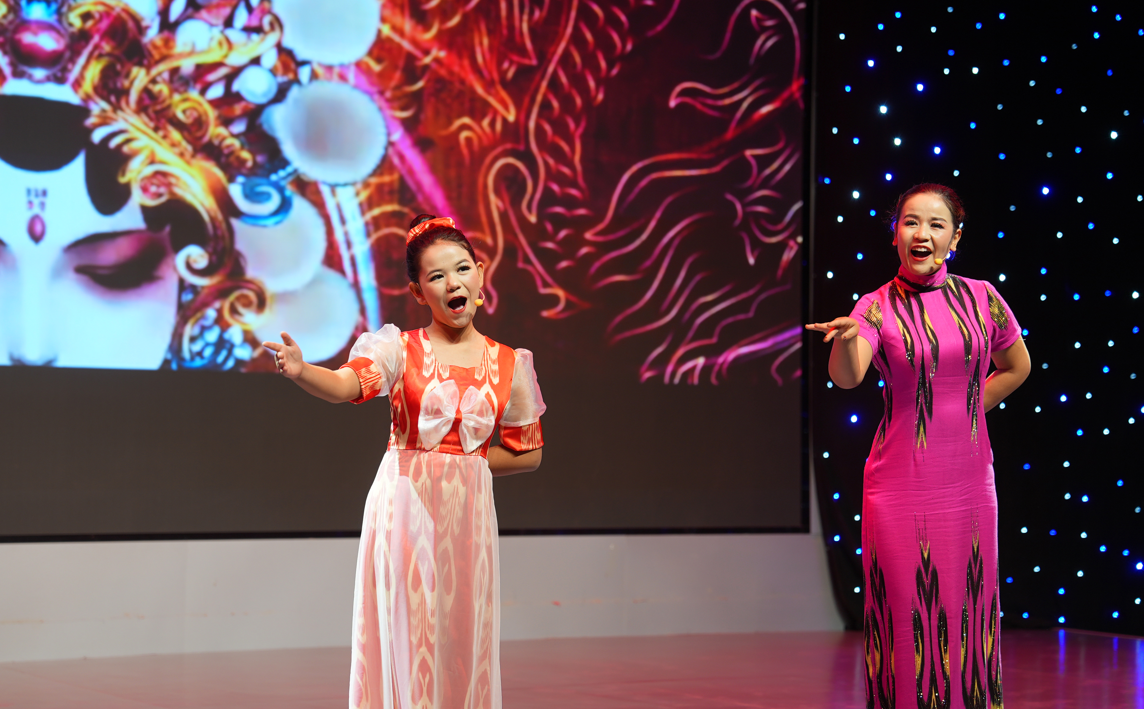 10月12日,孩子们在舞台上朗诵。吐鲁番市融媒体中心记者 谢懂飞 摄