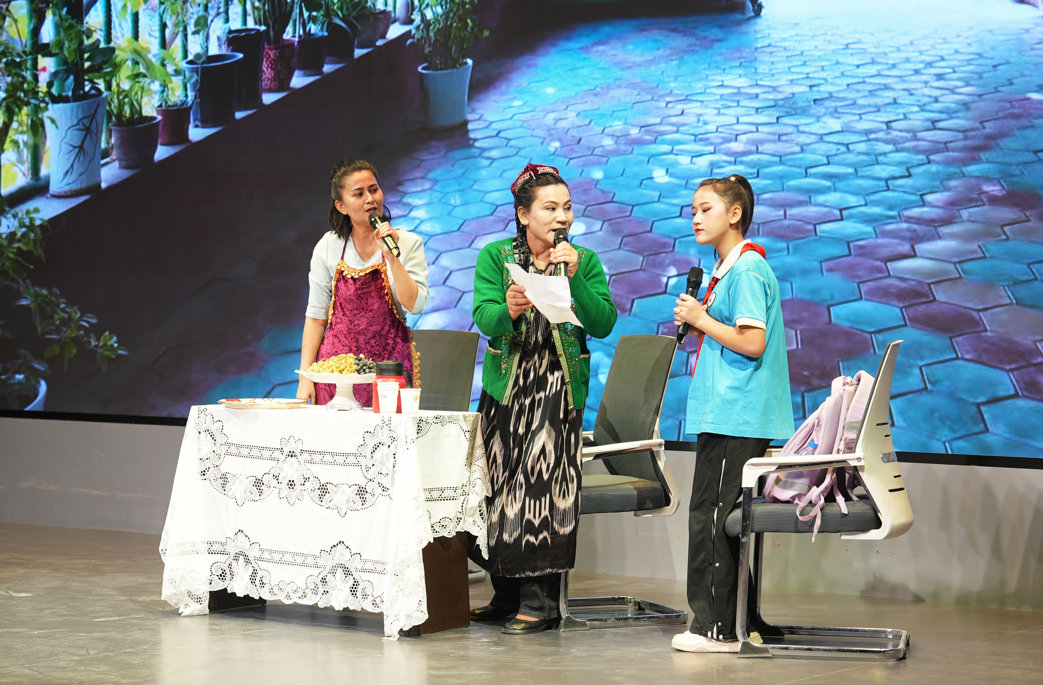 《新城西门村的甜蜜答卷》表演者阿迪拉·依拉洪说:“大家一起学习交流,不仅提升了我的语言能力,也让我们一家人更加亲密融洽。我会把这份收获传递给更多人,带动大家积极学习和使用国家通用语言文字。”