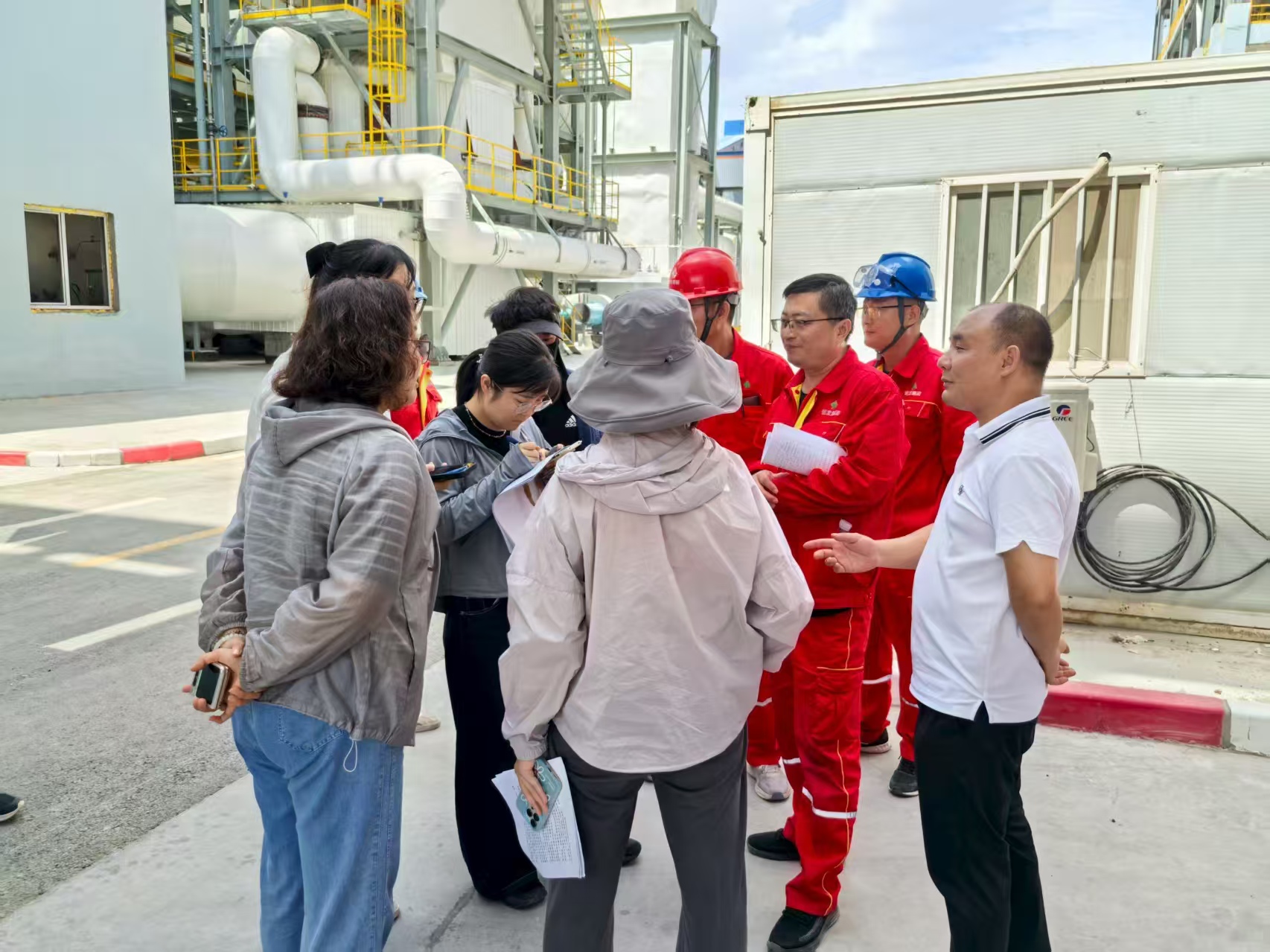 2025年7月25日,湖南省生态环境柔性援疆“小组团”专家刘宏伟同志(右一)带队,对某化工新材料有限公司固定污染源排污许可申领进行现场审查,指导许可证填报。