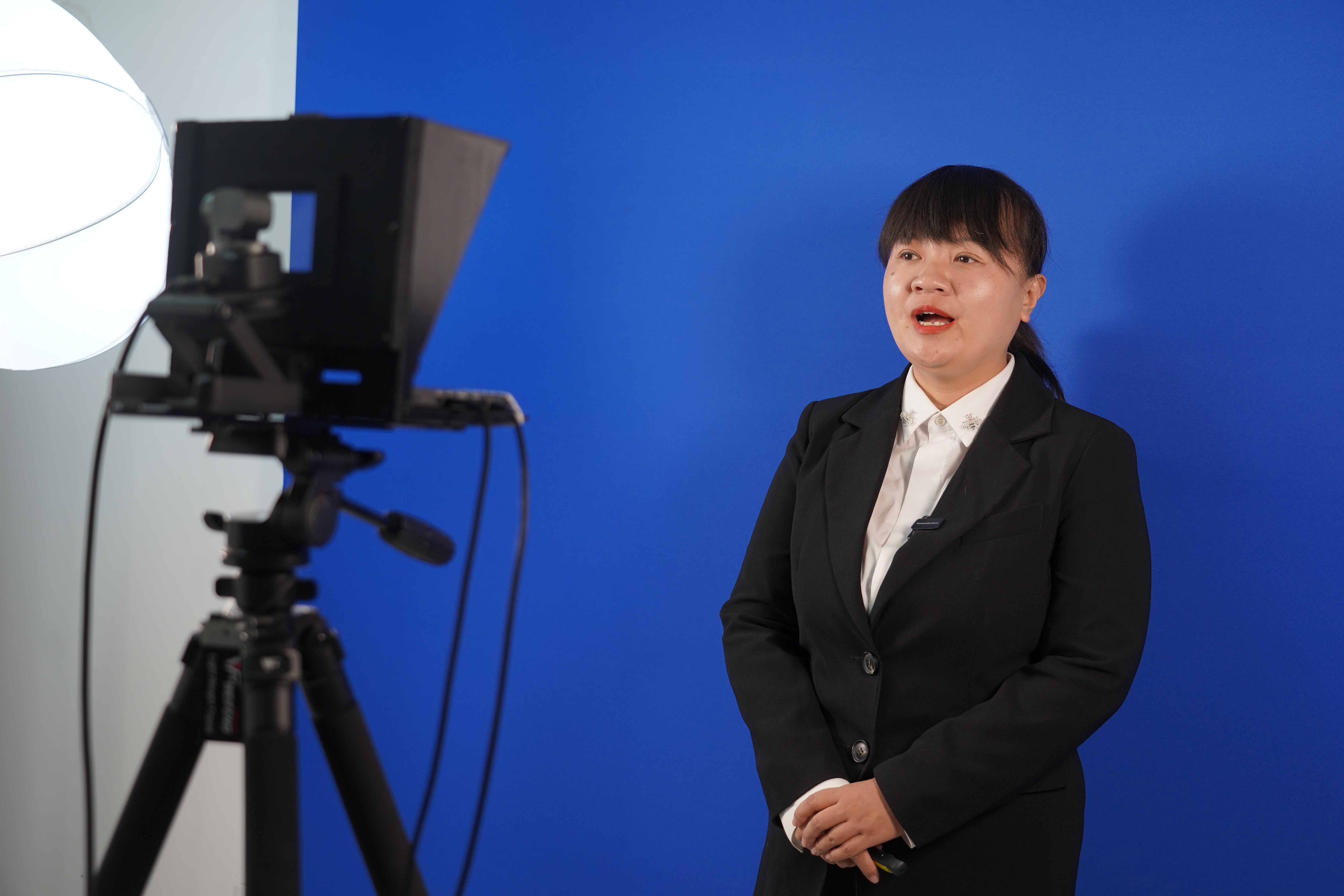 市实验中学教师用绿幕直录播系统录课。吐鲁番市融媒体中心记者 买迪努尔 摄