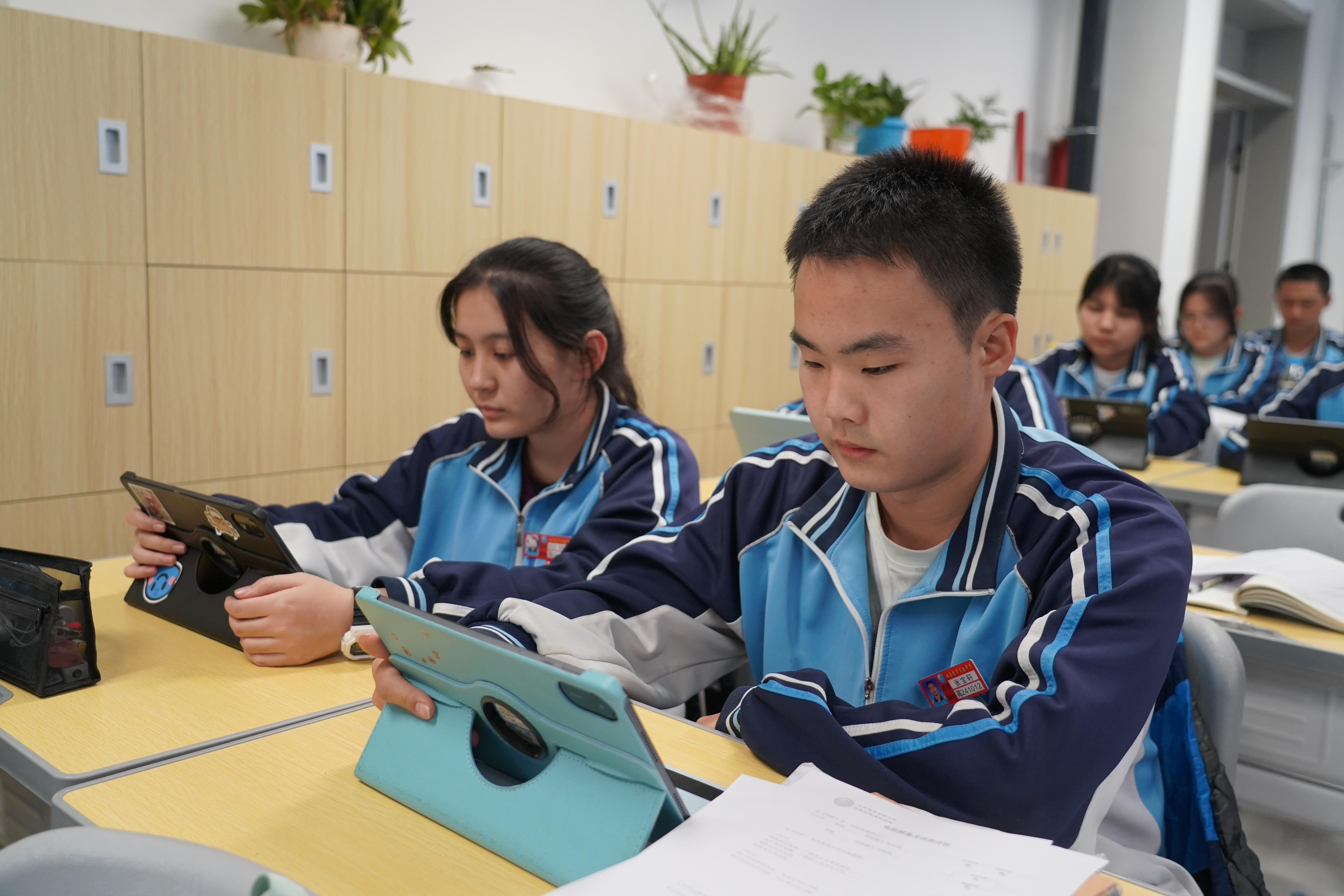 在市实验中学的智慧教室里,学生们通过平板电脑实时接收资源、完成练习。该校依托“组团式”教育援疆机制,借助智慧评价系统、虚拟教研平台等工具,实现湘吐两地教育资源共建共享。校长杨帆表示,2024至2025年,学校一本上线率突破50%,本科上线率达98%,创历史新高;教师课堂互动频次提升65%,相关经验获国家级认可并向全疆推广。