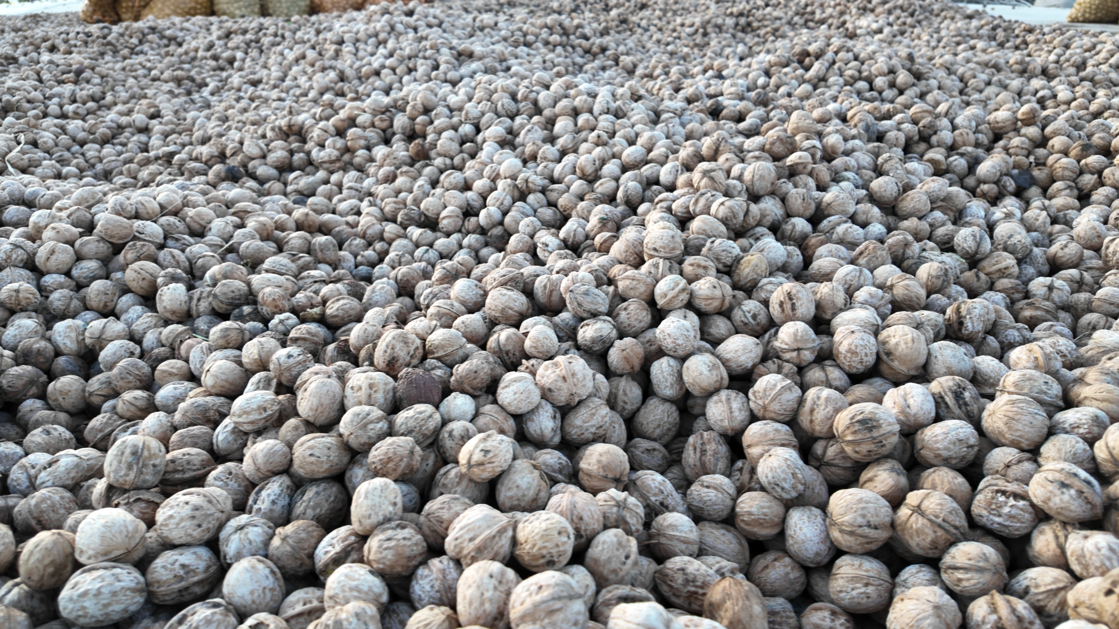 柯柯亚村正在晾晒的核桃。