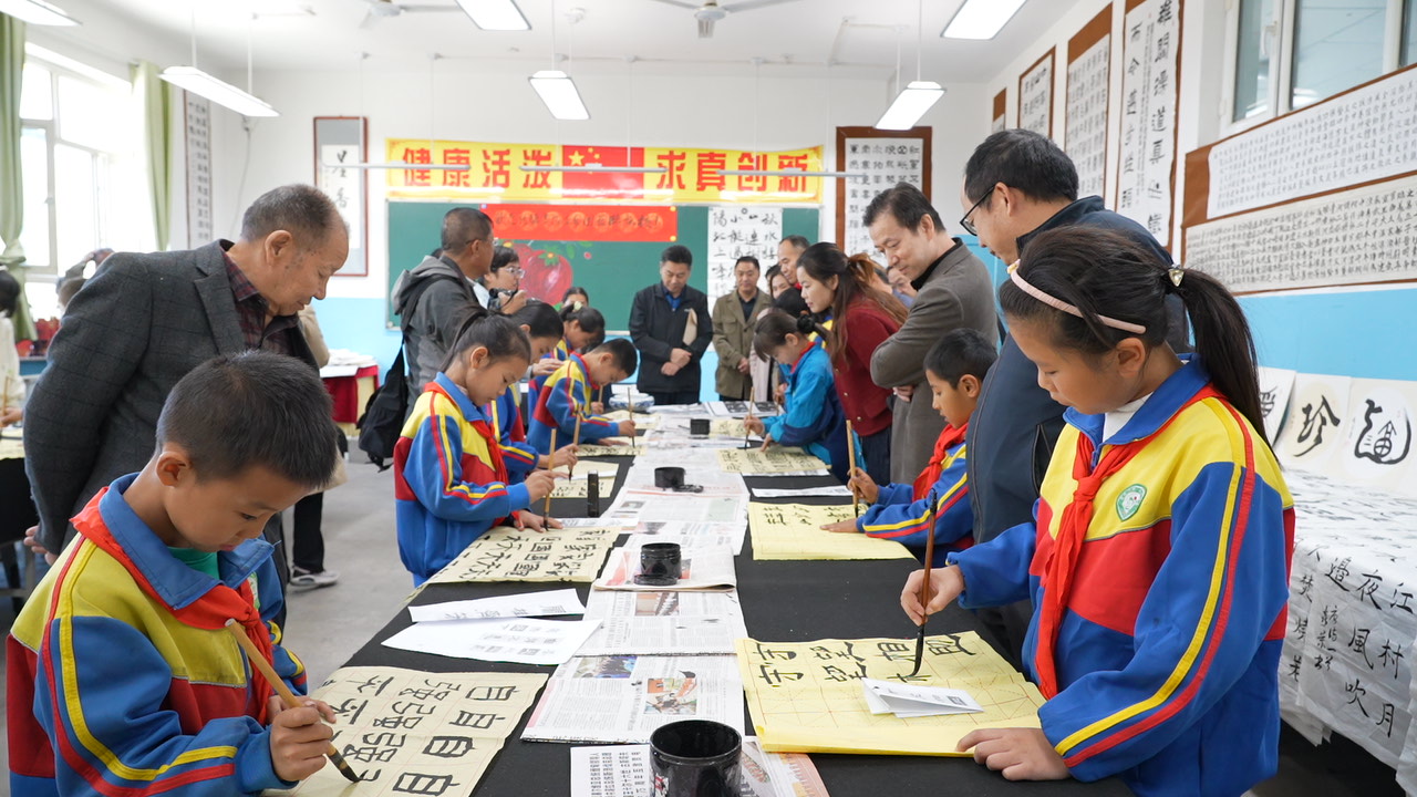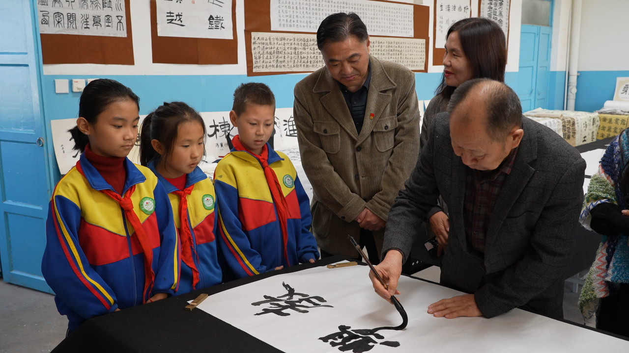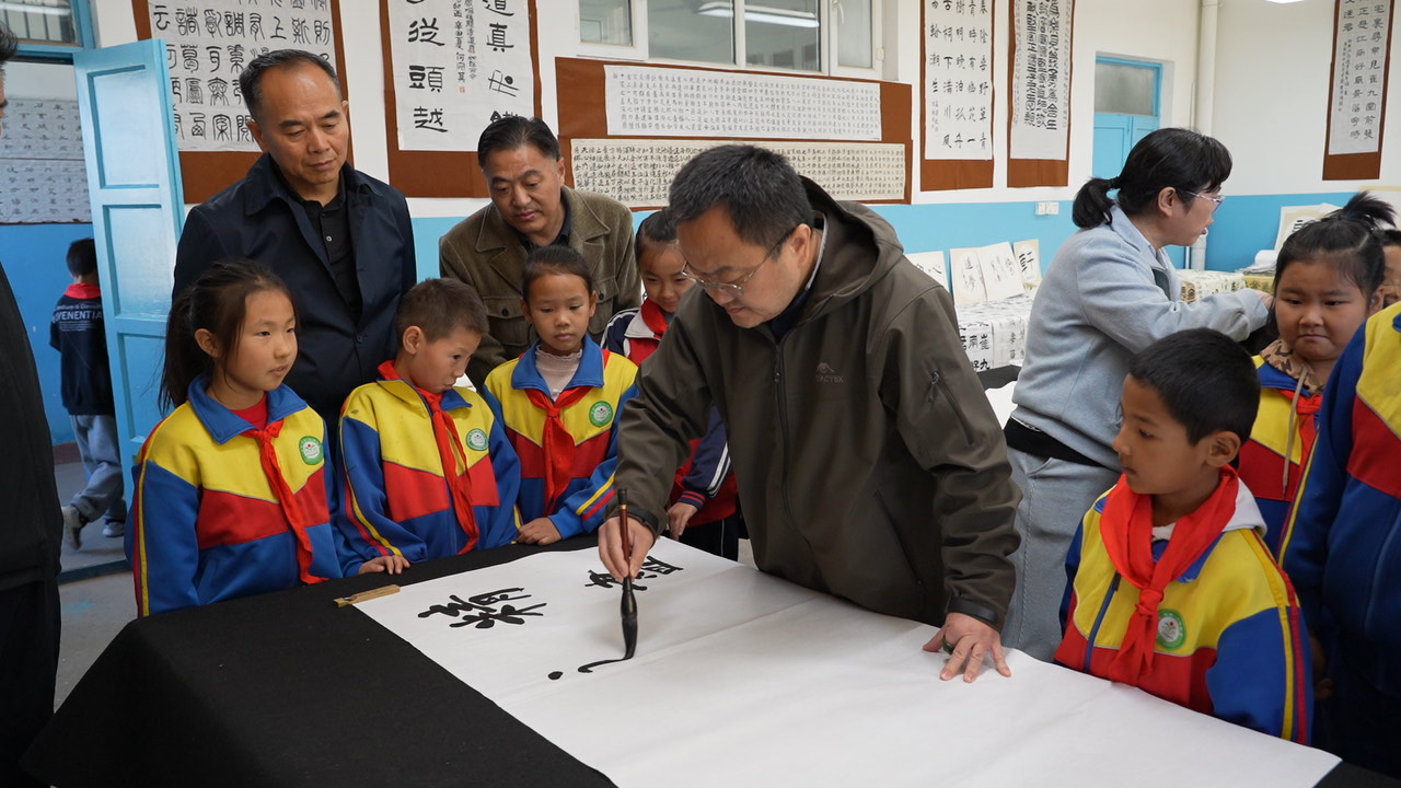 在鄯善县双水磨学校,书法家们带来了精彩的书法讲座和书写示范。他们用通俗易懂的语言讲解书法基础知识,以行云流水的现场创作展示书法艺术的独特魅力,点燃了学生们的学习热情。互动环节,学生们踊跃参与,近距离感受笔墨纸砚间的韵味。书法家们耐心细致地进行一对一指导,手把手地传授书写要领,鼓励孩子们传承好中华优秀传统文化。
