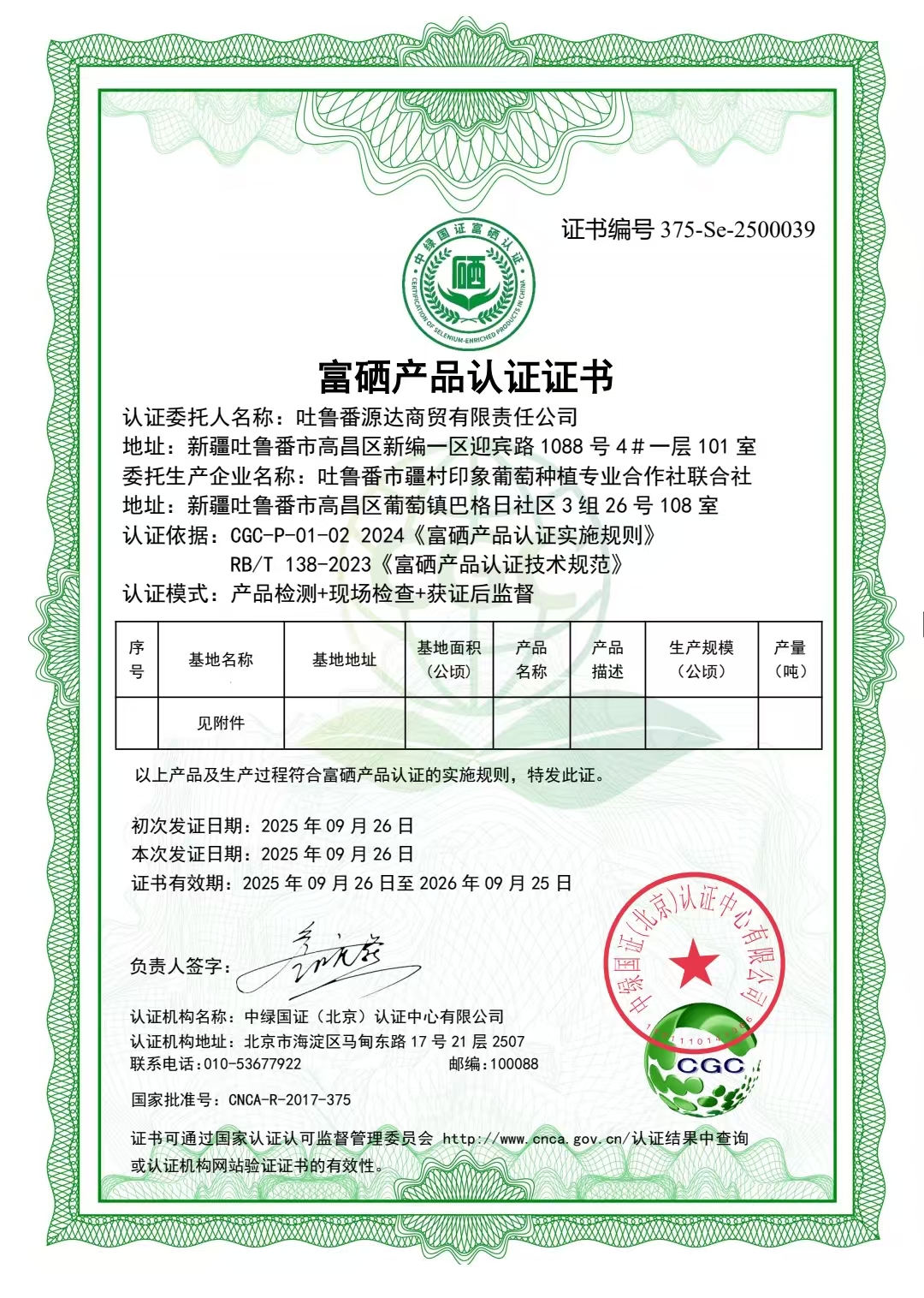 近日,吐鲁番市疆村印象葡萄种植专业合作社联合社种植的葡萄通过中绿国证(北京)认证中心有限公司审核,获得富硒产品认证证书。该认证依据国家《富硒产品认证技术规范》,通过“产品检测+现场检查+获证后监督”全流程审核,标志着吐鲁番葡萄在品质提升与产业转型上迈出关键一步。