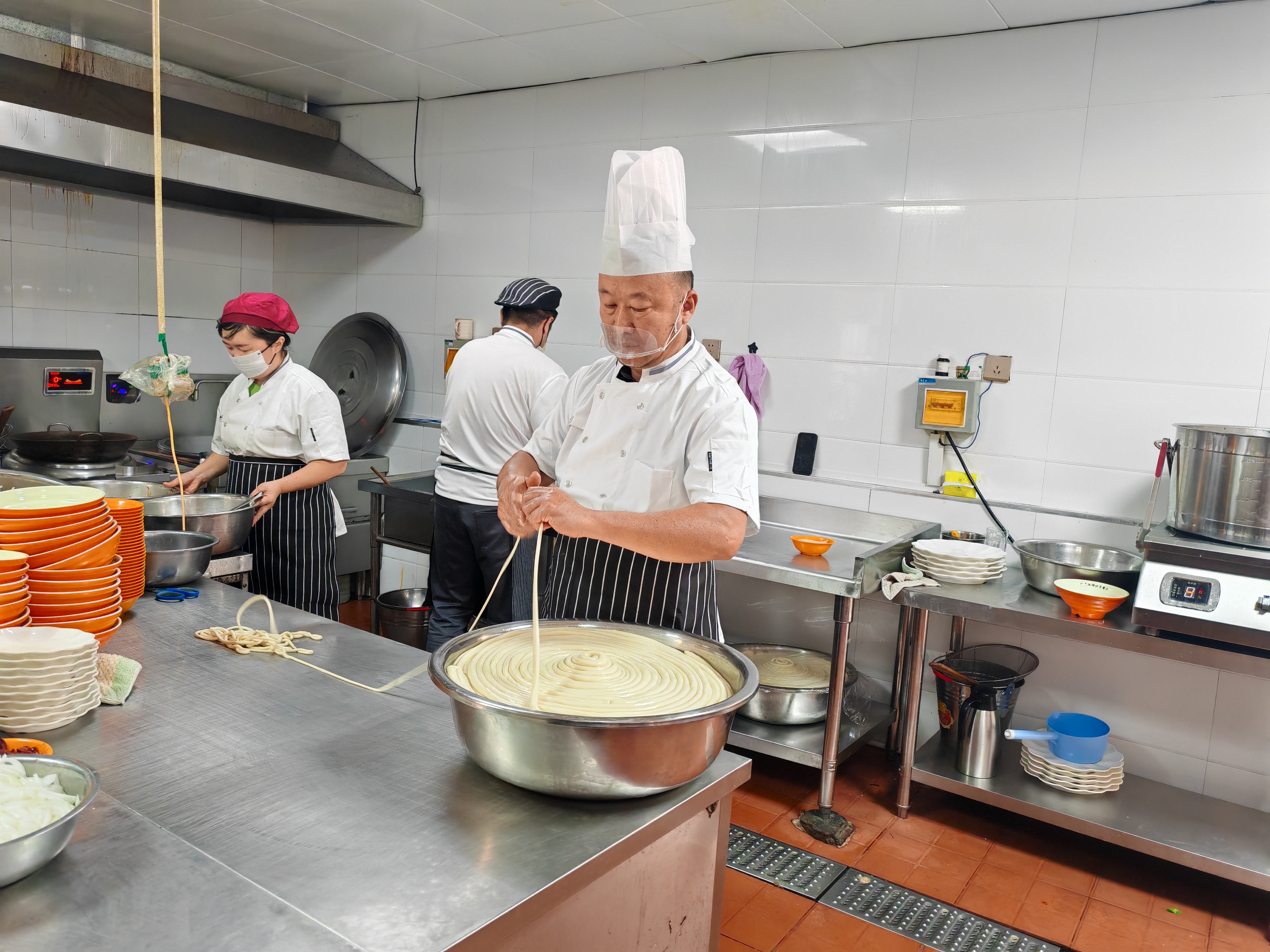 正在拉面的周军。吐鲁番市融媒体中心记者 彭丹妮 摄