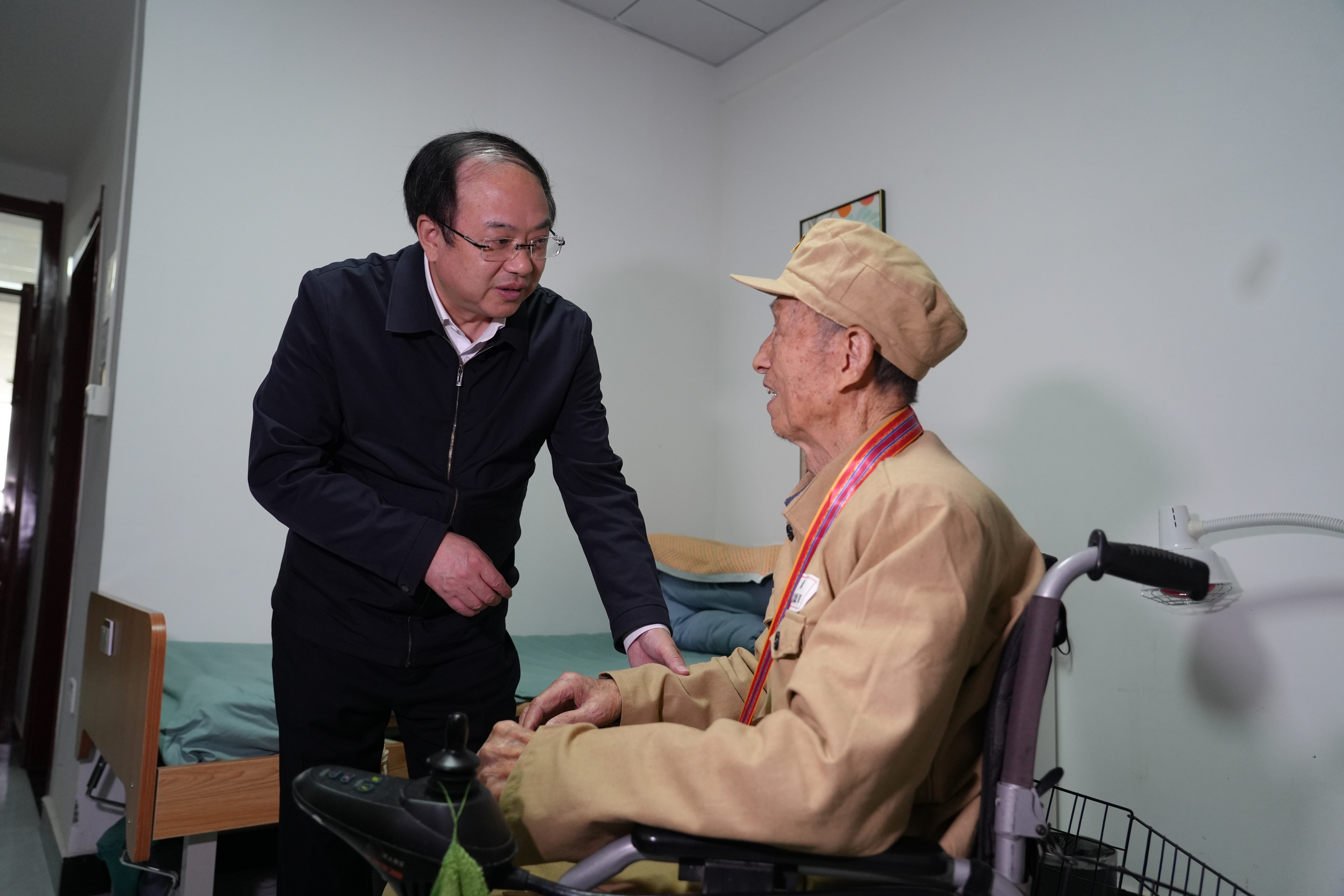 10月28日,市委书记文天平在市光荣院看望慰问93岁抗美援朝老战士谭惠。吐鲁番市融媒体中心记者 彭丹妮 摄