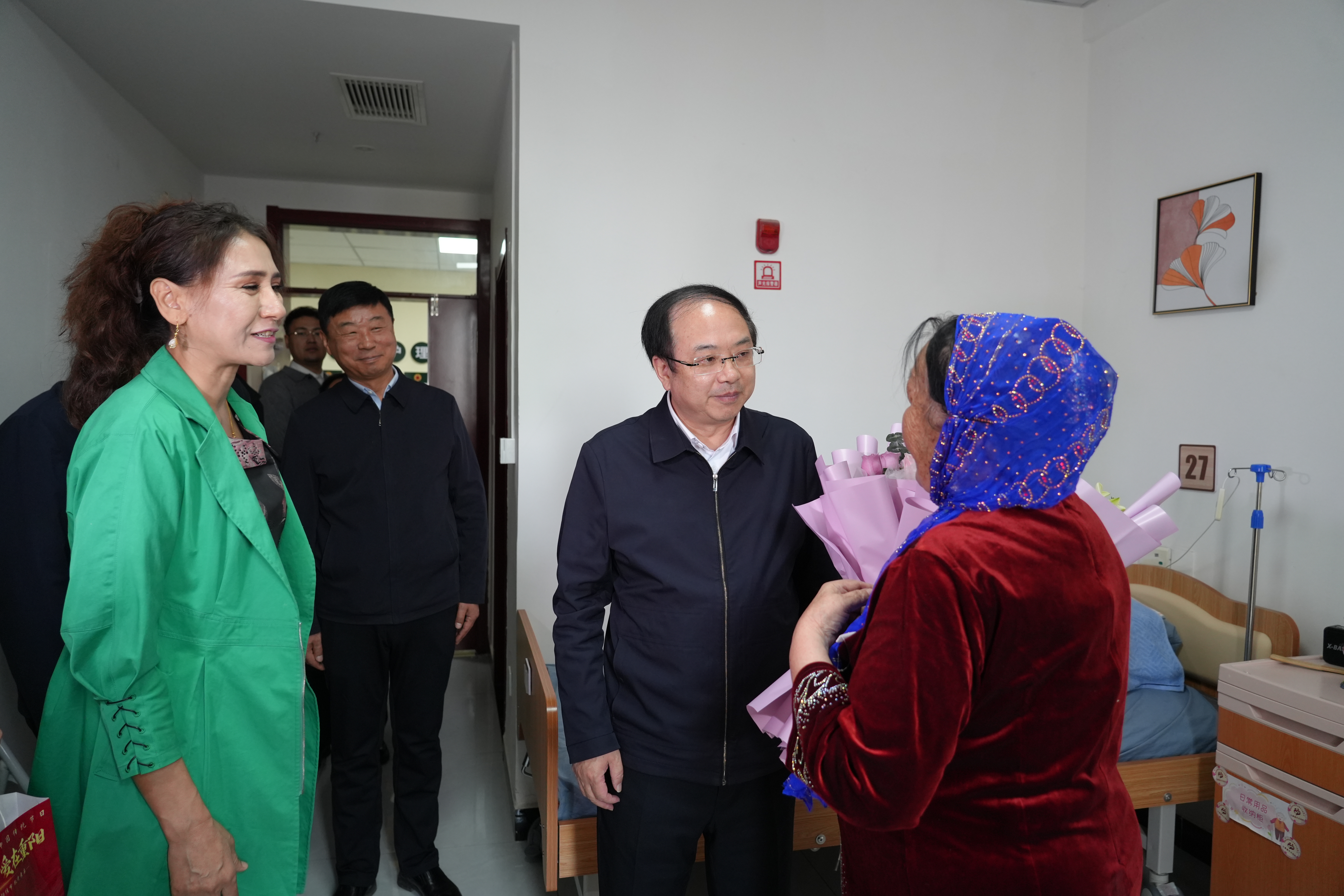 10月28日,市委书记文天平在市光荣院看望慰问烈士遗属孜来汗・买合素提。吐鲁番市融媒体中心记者 彭丹妮 摄