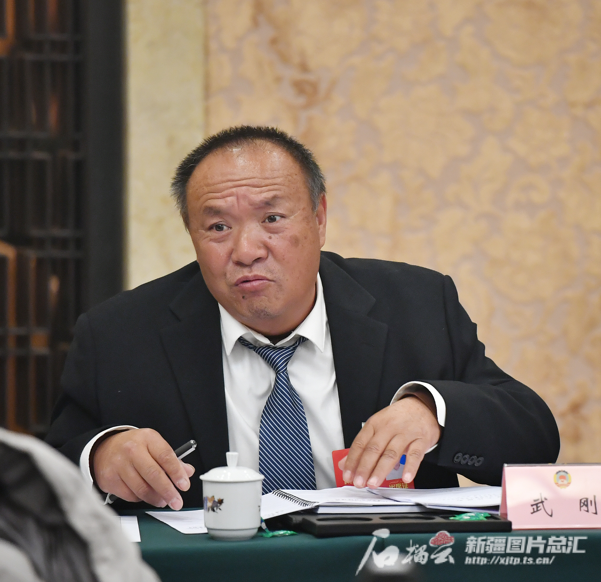 1月30日,武刚委员在分组讨论时,就发挥科技服务作用、助力农村农业现代化建设等内容发言。石榴云/新疆日报记者 邹懿摄