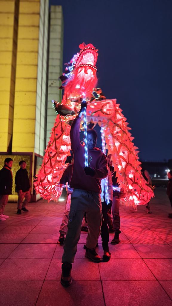 “我们舞的这条龙会发光,红红火火的,在夜里非常漂亮。”刘昂兴奋地告诉记者,这和自己来中国前在孔子学院看到的舞龙不一样,感觉更炫酷。刘昂在团队中负责舞龙头。他已经学会了舞八字、腾跃行进、穿龙尾等动作,还要在舞龙队行进时把握团队节奏。